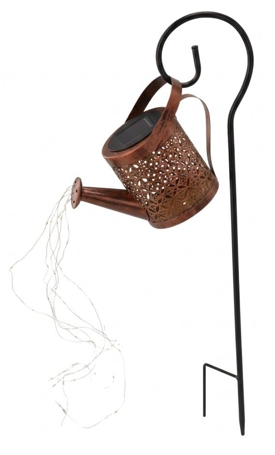 Svjetiljka ima kompaktne mjere 21 × 10,5 × 12 cm, što omogućuje jednostavno postavljanje na različite vanjske površine. Ukupna visina s kukom iznosi približno 80 cm, što omogućuje da svjetiljka elegantno visi i stvara učinak »pretakanja svjetla«. Dekorativni svjetlosni lanci koji se spuštaju iz kante za zalijevanje oponašaju mlaz vode, pa je svjetlosni učinak osobito privlačan u večernjim satima.