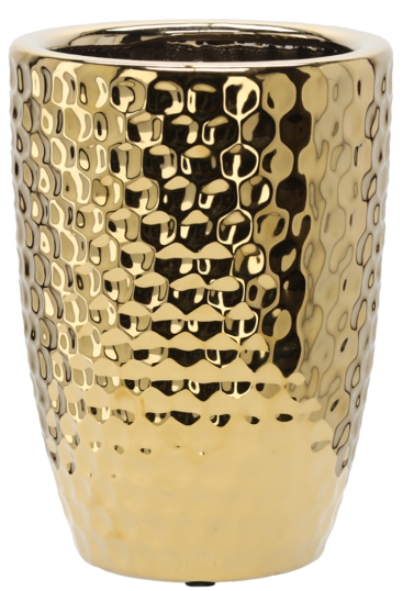 Keramička ukrasna posuda marke Chomik sa svojim dimenzijama 25,5 × 25,5 × 34,5 cm predstavlja savršenu ravnotežu između suvremenog dizajna i bezvremenske elegancije. Zlatna boja s visokim sjajem odmah privlači pažnju, dok reljefni uzorak saća posudi daje jedinstveni trodimenzionalni učinak. Zbog svoje visine i širine pogodna je za različite vrste sobnih biljaka, od bujnih fikusa do minimalističkih sukulenata. Ovaj proizvod nije samo funkcionalan dodatak za sadnju, već i izraženi dekorativni element koji prostoru daje toplinu i osjećaj raskoši.