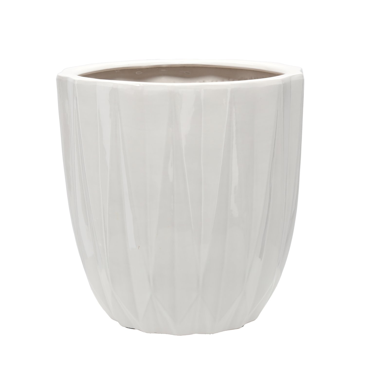 Elegantna keramička posuda spaja profinjen dizajn, čvrstoću i bezvremensku estetiku koju odlikuje glatka, sjajna površina. Izrađena je od kvalitetne keramike koja osigurava dugotrajnu upotrebu i otpornost na oštećenja, stoga je idealna za sve koji žele svoje unutarnje prostore obogatiti diskretnom, ali istodobno uočljivom dekoracijom. Njezine dimenzije omogućuju stabilnost i dovoljno prostora za različite vrste cvjetnih posuda, što je čini svestranim komadom unutarnje opreme.