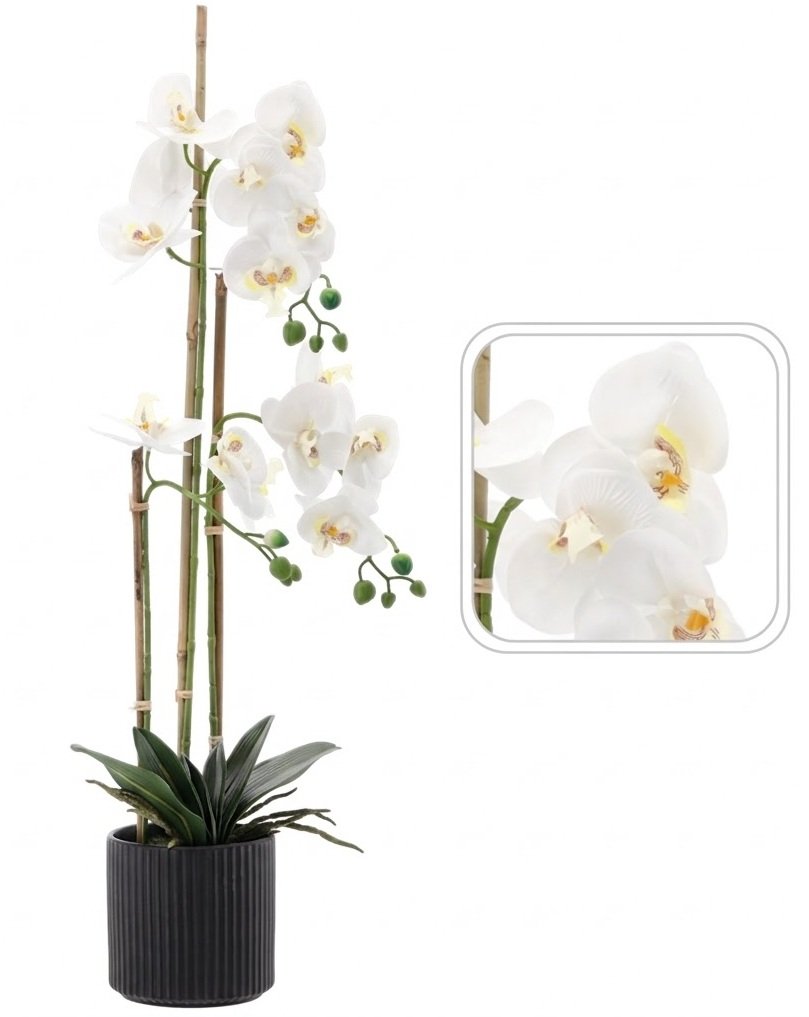 Orhideja stoljećima predstavlja simbol savršenstva, profinjenosti i unutarnje snage. U bijeloj boji simbolizira čistoću, eleganciju i mir, što je čini posebno prikladnom za prostore u kojima želimo stvoriti opuštajuću atmosferu. Umjetna orhideja Chomik sa svojim nježnim oblikom i prirodnom kombinacijom boja u svakom prostoru stvara osjećaj ravnoteže i harmonije. U kombinaciji s dekorativnom vazom ili minimalističkom posudom postaje središnji estetski element prostora.