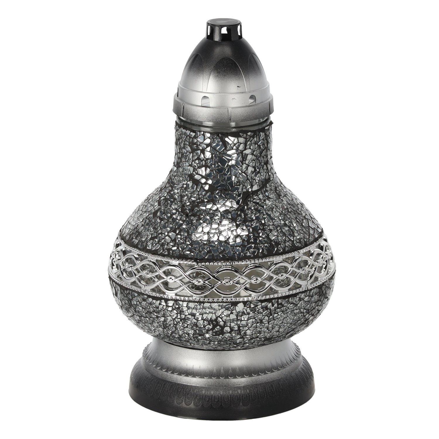 Lampion Karafa Mala u srebrnoj boji više je od dekorativnog elementa – predstavlja simbol vječnosti, mira i poštovanja. Njegov vitražni dizajn omogućuje da se svjetlost svijeće nježno rasprši kroz obojeno staklo, stvarajući osjećaj topline i spokojstva. Srebrni ton kućišta dodaje dozu profinjenosti zbog koje se lampion lijepo uklapa u različite grobne aranžmane, bilo klasične ili suvremene. Ova kombinacija elegancije i simbolike razlog je što je Karafa Mala popularan izbor među onima koji žele nježnim svjetlom izraziti poštovanje prema svojim najmilijima.