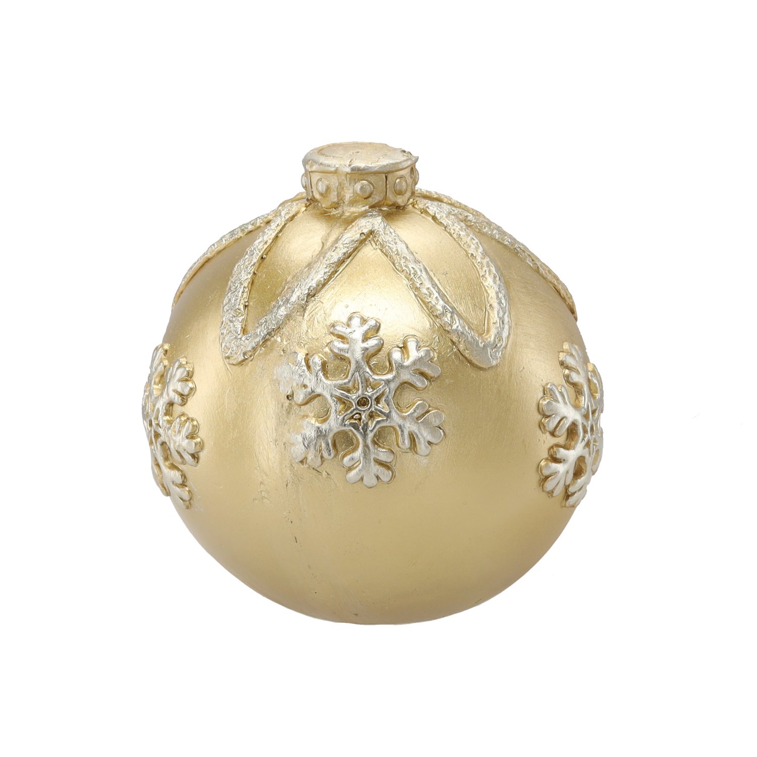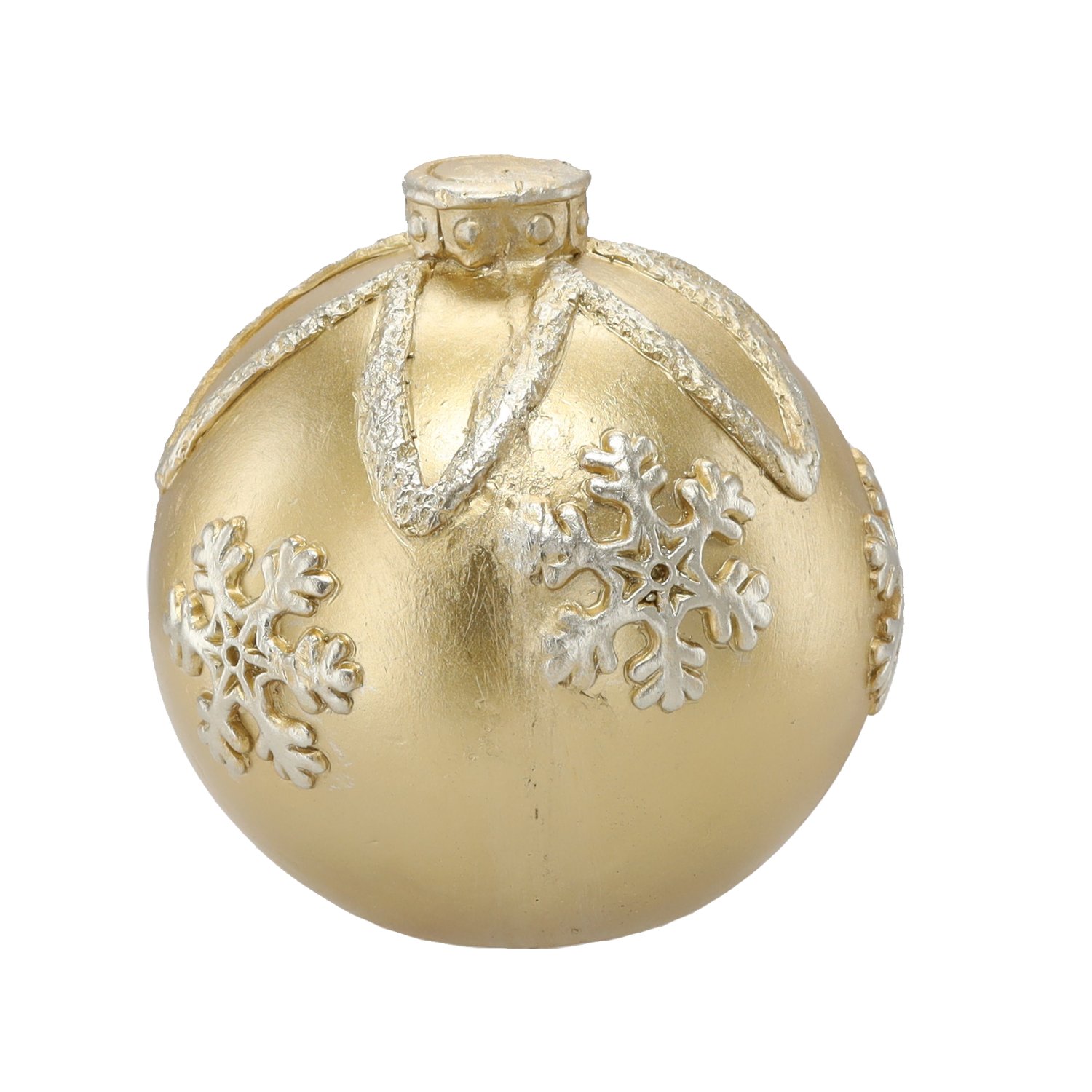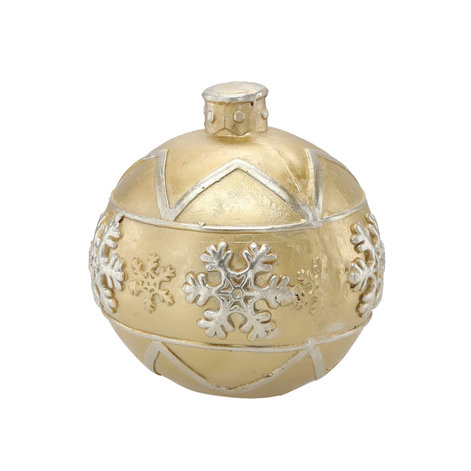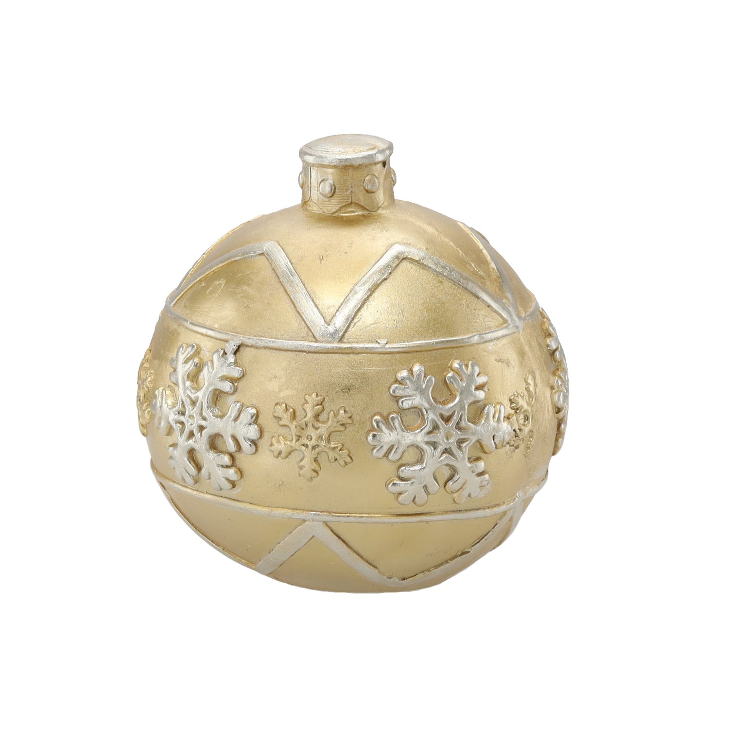 Ova prekrasna božićna kuglica marke Chomik izvanredan je dekorativni element koji će unijeti toplinu, blagdansko raspoloženje i dašak elegancije u vaš dom. Njezin zlatni dizajn s isprepletenim različitim uzorcima stvara bogat vizualni učinak koji se prekrasno slaže s blistavim lampicama, zelenim grančicama i ostalim božićnim ukrasima. S dimenzijama 21,5 × 21,5 × 21,5 cm ova figura postiže savršenu ravnotežu između uočljivosti i profinjenosti te će postati središte svake blagdanske postave – bilo na božićnom drvcu, komodi ili kao dio stola s adventskim vijencem.
