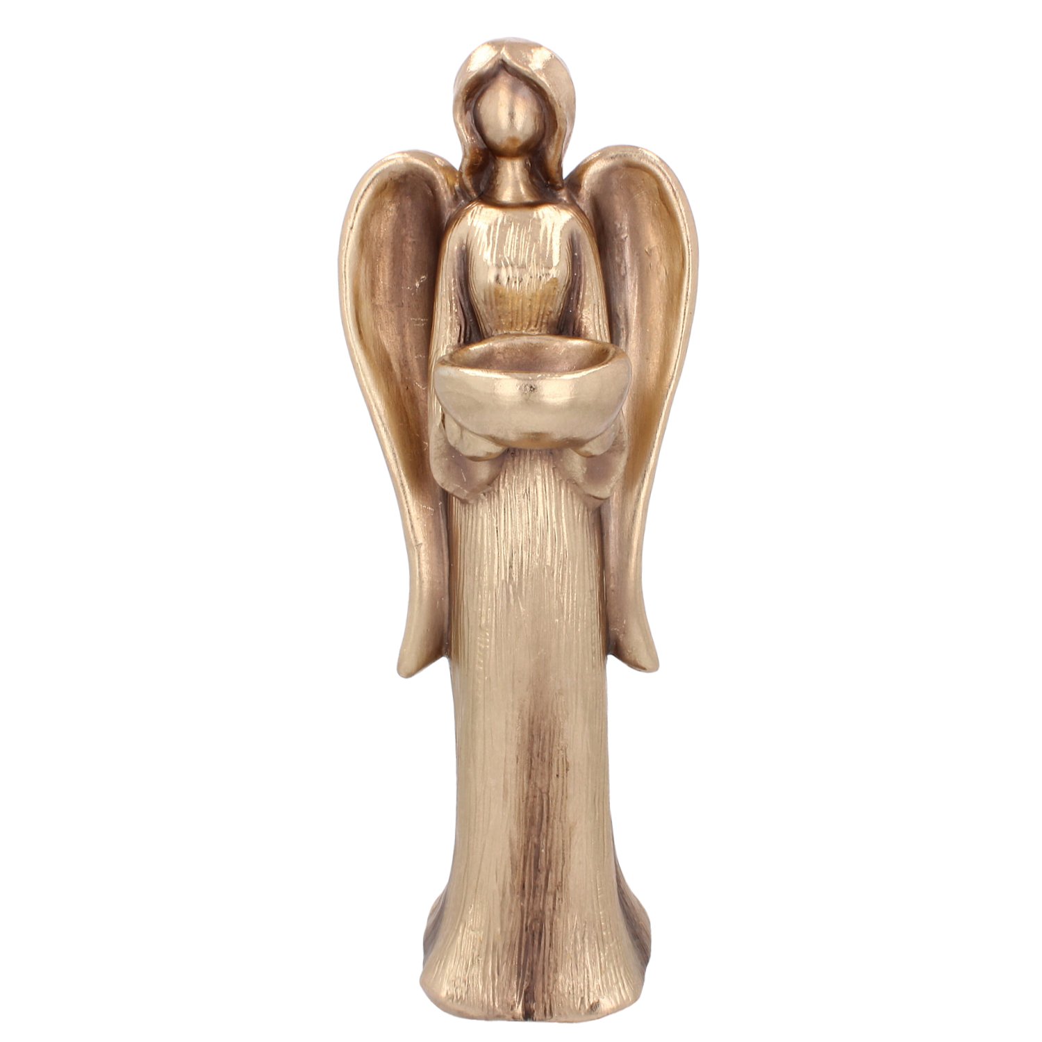Anđeo je oduvijek simbol sigurnosti, mira i topline. Postavljanje ove figure u unutarnji prostor može stvoriti osjećaj harmonije i duhovne povezanosti. Često se koristi kao dekorativni element u dnevnim sobama, spavaćim sobama ili na blagdanskim stolovima. Zlatna boja simbolizira svjetlost, nadu i dobru energiju, pa je ova figurica i izvrstan poklon za posebne prigode poput Božića, rođendana ili godišnjica.