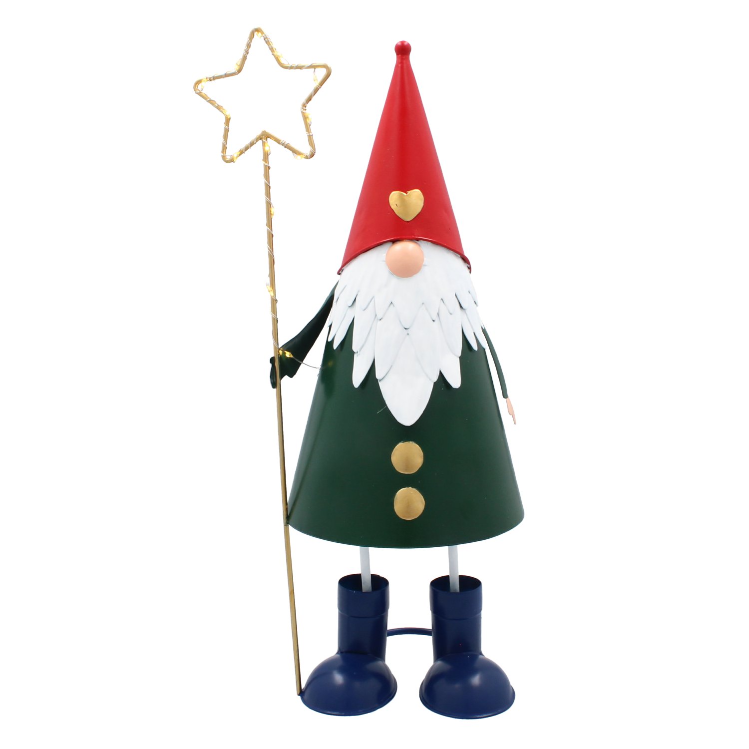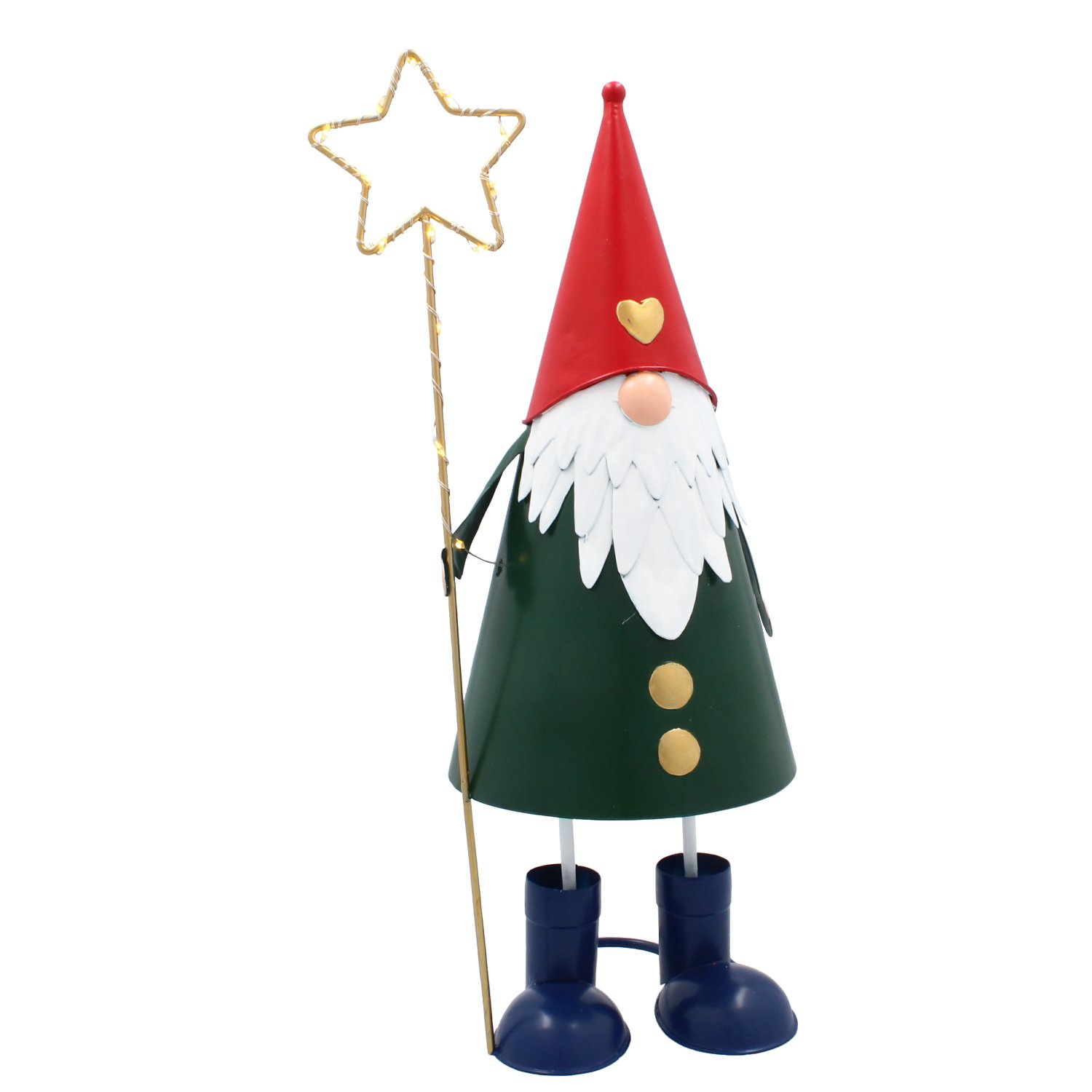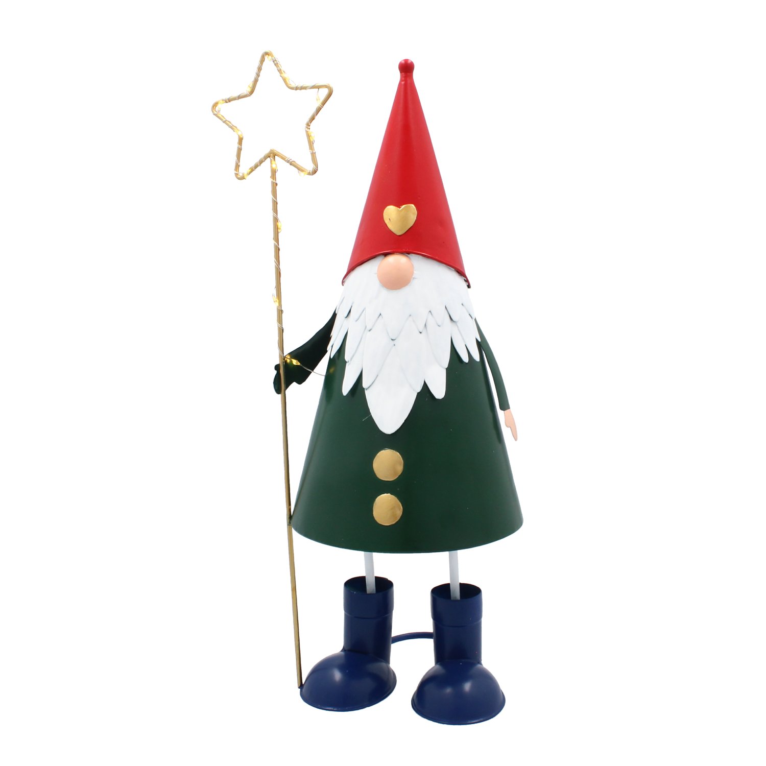Dimenzije 13 × 13 × 37 cm omogućuju da figura bude dovoljno uočljiva, a da ne zauzima previše prostora. Visina od 37 cm daje patuljku elegantan, ali razigran stav koji odmah privlači pogled. Zvijezda u njegovim rukama djeluje kao svjetlosni naglasak, dok metalni detalji stvaraju ugodan kontrast s toplim sjajem LED svjetla. Takva kombinacija materijala i svjetla karakteristična je za suvremene blagdanske dekoracije koje spajaju tradicionalne motive s modernim dizajnom.