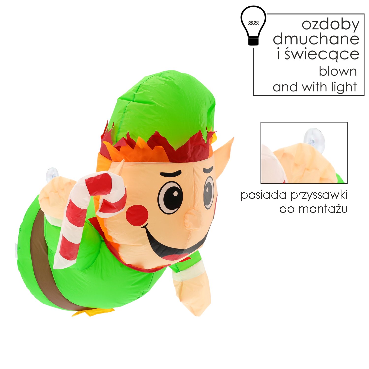 Patuljak s LED osvjetljenjem savršeno se uklapa u klasične božićne motive – jelke, snjegoviće, sobove ili svjetlosne lance. Njegova veličina od 90 cm omogućuje da postane samostalni naglasak ili dopuna veće kompozicije. Možete ga postaviti na prozorsku dasku, zalijepiti na staklo ili objesiti na vrata; zahvaljujući fleksibilnoj upotrebi prilagođava se svakoj maštovitoj ideji. Djeca će ga obožavati, a odrasli cijeniti njegovu jednostavnu, ali učinkovitu funkcionalnost.