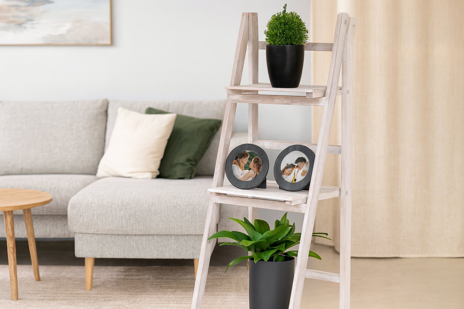 Ova elegantna ljestvasta polica s tri police spaja izdržljivost masivnog drva s bezvremenskom estetikom prirodno izbjeljene površine. Polica s policama PHO8423 dizajnirana je kao jednostavan, ali funkcionalan komad namještaja koji se savršeno uklapa u različite prostore – od dnevnog boravka do kupaonice. Njezine kompaktne dimenzije 42×39×109 cm omogućuju iskorištavanje visine prostora bez zauzimanja previše podne površine. Samostalna i jednostavna montaža znači da je možete brzo postaviti tamo gdje vam je najpotrebnija.