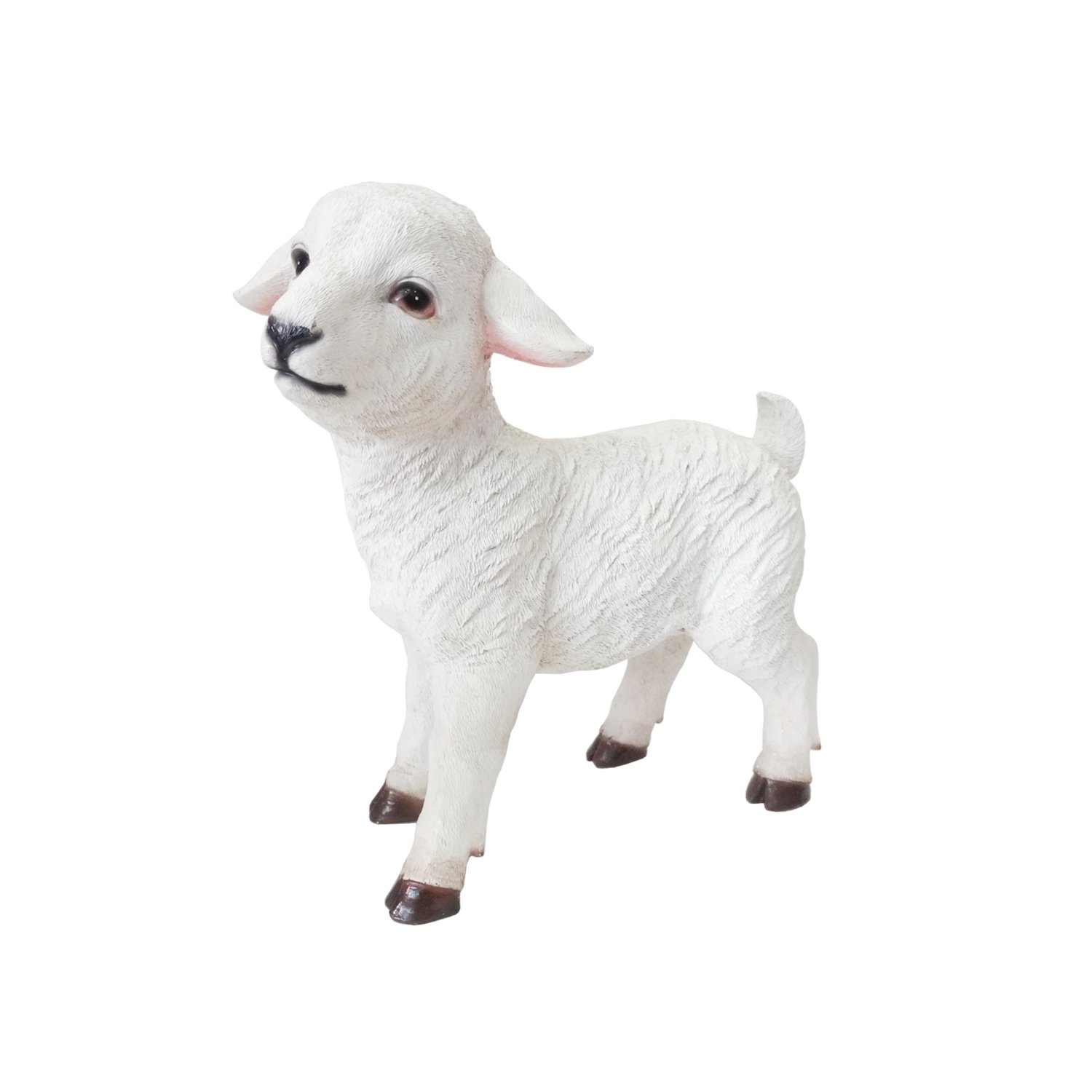 Osnova figure je poliesterska smola, materijal koji se često koristi za ukrasne predmete visoke kvalitete. Polyresin omogućuje precizno oblikovanje detalja, pa su sve linije, oblici i teksture ovčice lijepo naglašene – od meke, blago valovite „vune” do sitnih crta lica koje joj daju živahan i prijateljski izraz. Površina je premazana posebnim zaštitnim slojem koji sprječava blijeđenje boja i oštećenja od UV zraka ili vlage. Tako će figura još godinama zadržati svoj blagdanski sjaj.
