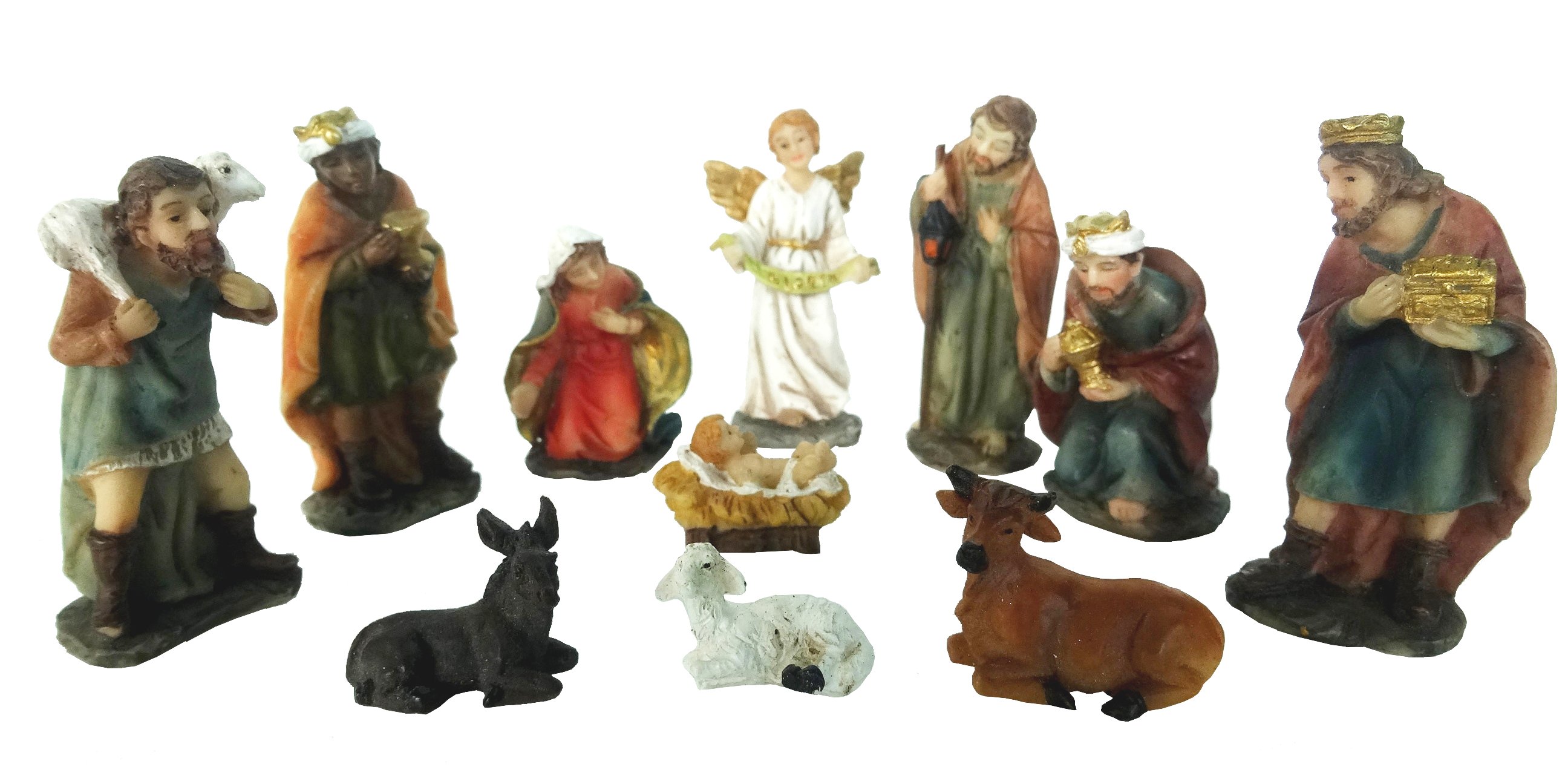 Komplet od 11 božićnih figurica predstavlja cjeloviti prikaz biblijske priče o Isusovu rođenju. U njemu ćete pronaći sve ključne likove koji čine tradicionalni postav jaslica: Josipa, Mariju, Dijete Isusa, anđela, tri kralja, pastira te životinje – magarca, vola i ovcu. Svaka je figurica pažljivo oblikovana kako bi izrazila nježnost i simboliku božićnog vremena. Lica su ručno obojana, a njihovi izrazi puni mira i topline, stvarajući osjećaj domaće ugode i poštovanja prema blagdanskoj tradiciji.