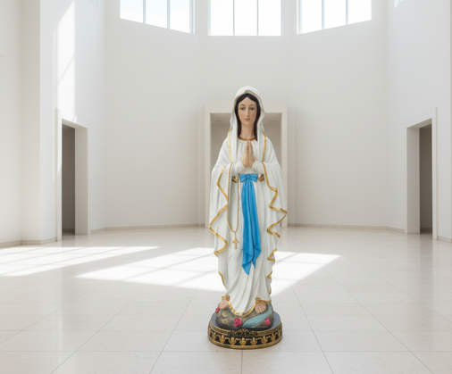 Marija iz Lurda jedna je od najprepoznatljivijih slika u kršćanskom svijetu, povezana s milošću i nadom. Postavljena u vrt, ispred kuće ili u unutarnji molitveni kutak, figura stvara ozračje tišine i duhovne bliskosti. Zbog svoje visine od 120 cm dovoljno je velika da se istakne, a istodobno ostaje skladna s okolinom. Njezine staklene oči daju liku osjećaj živosti i nježnosti, što je karakteristično za kiparsku tradiciju koju Chomik njeguje već dugi niz godina. Takva figura nije samo dekorativni predmet, već i izraz osobne vjere i poštovanja prema duhovnim vrijednostima.
