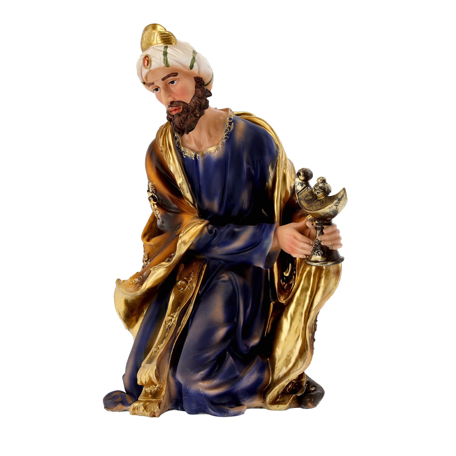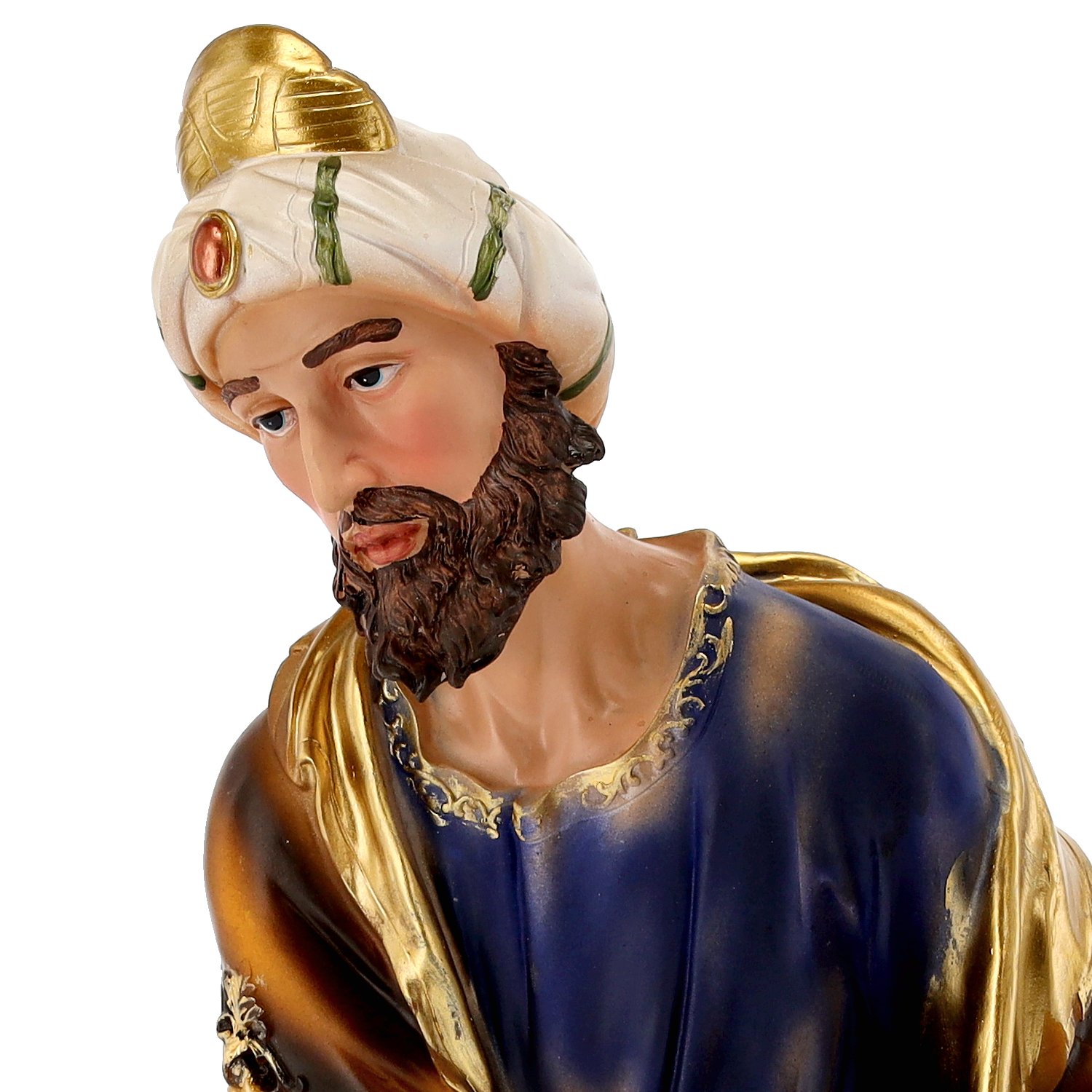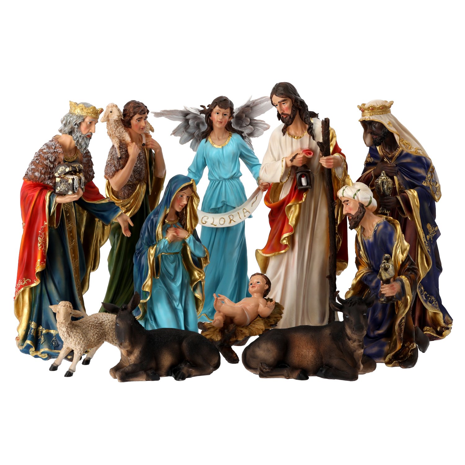 Poli-resin je suvremeni kompozitni materijal koji se često koristi za izradu dekorativnih elemenata, jer omogućuje precizno oblikovanje i visoku razinu detaljnosti. U usporedbi s tradicionalnim materijalima poput keramike ili drva, poli-resin je lakši, otporniji na vlagu i temperaturne promjene te jednostavan za čišćenje. Površina figura može biti premazana zaštitnim lakom koji dodatno štiti bojani sloj i čuva njihov sjaj kroz više sezona upotrebe.