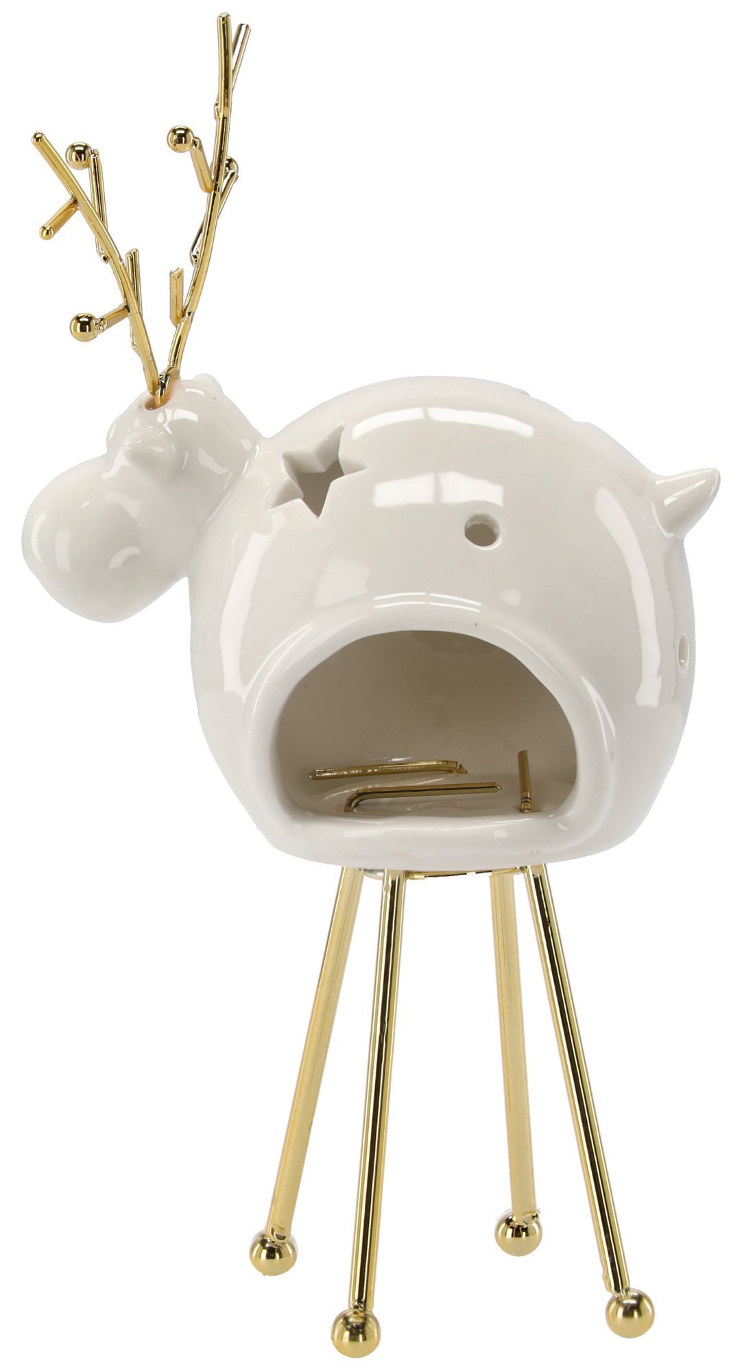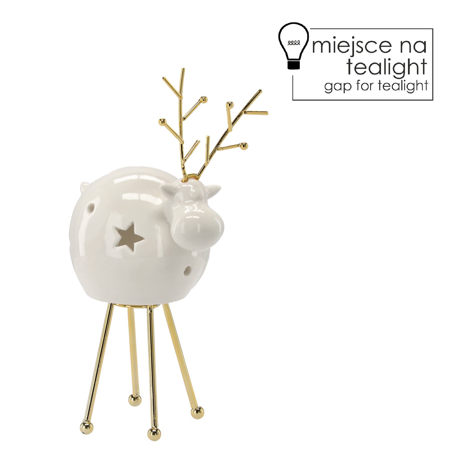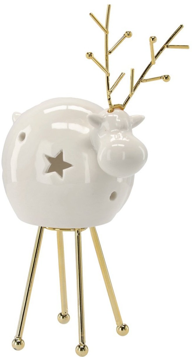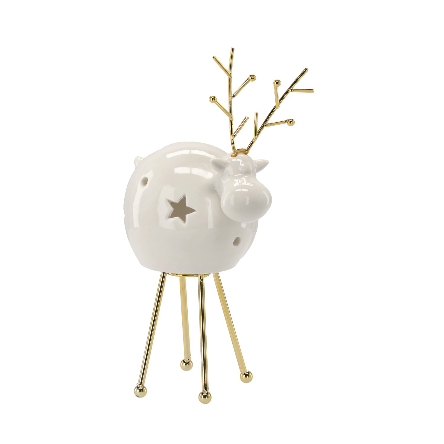 Keramički stojeći jelen nije samo ukras, već i izraz blagdanskog duha. Njegov dizajn se oslanja na klasične motive Božića, ali s modernim dodirom – jednostavnost oblika i svijetla paleta boja omogućuju da se lijepo uklopi s različitim dekorativnim elementima. Postavite ga uz adventski vijenac, svijećnjak ili božićno drvce, gdje će dodati osjećaj elegancije i topline. Zbog svoje visine od 22,3 cm dovoljno je uočljiv da privuče pogled, ali ne dominira nad ostalim ukrasima.