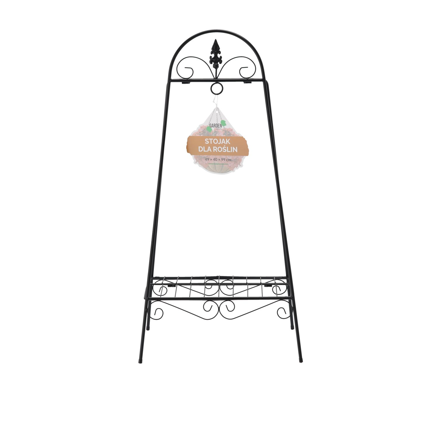 Stalak je izrađen u crnoj boji, koja se lako uklapa s različitim stilovima unutarnjeg uređenja – od minimalističkog do rustikalnog. Metalna konstrukcija otporna je na opterećenje i omogućuje sigurno postavljanje više biljaka istovremeno. Zbog čvrstog dizajna prikladan je i za unutarnju upotrebu i za natkrivene vanjske prostore, gdje je zaštićen od izravnih vremenskih utjecaja.