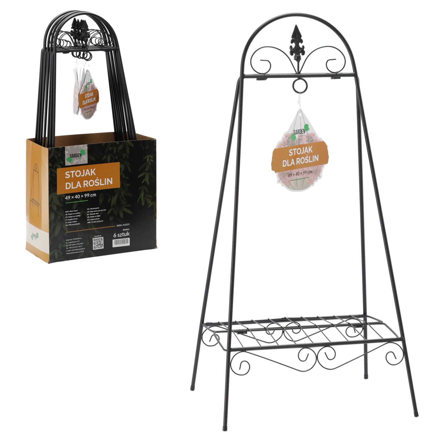 Crna boja i metalna konstrukcija stalka PERG-N5023 stvaraju uravnotežen izgled koji se uklapa u suvremene, industrijske ili tradicionalne prostore. Možete ga koristiti kao samostalan dekorativni element ili dio veće zelene postave. U kombinaciji s različitim lončićima, bojama biljaka i teksturama stvarate živahan kutak koji oživljava svaki prostor.