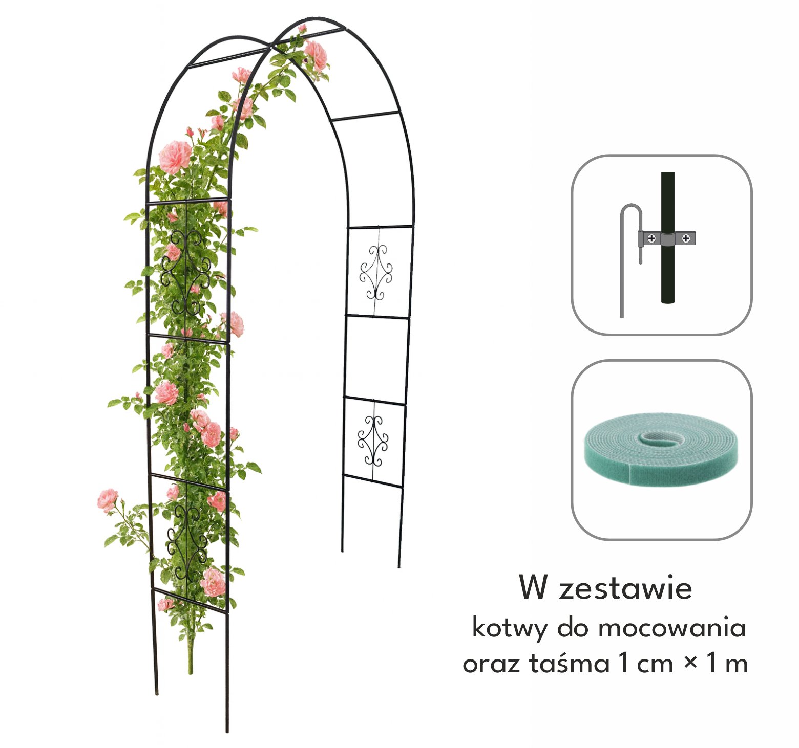 Crna boja pergole Chomik PERG-N5030 djeluje moderno i elegantno, a pritom se nenametljivo stapa s različitim tonovima boja bilja i vrtnog namještaja. Bojani premaz štiti površinu od vanjskih utjecaja, što doprinosi dugotrajnosti proizvoda. Pergolu je moguće koristiti kao dekorativan ulaz u vrtni prostor, kao potporu za biljke ili kao samostalan arhitektonski naglasak uz stazu ili terasu.