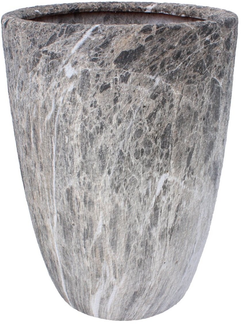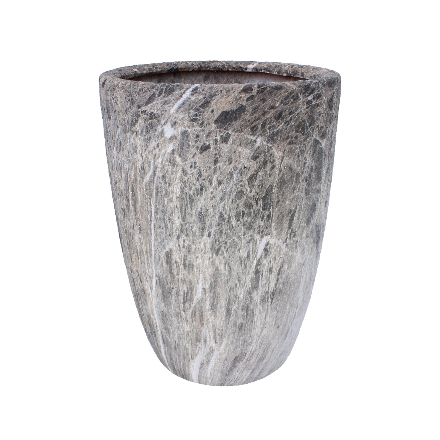 Siva boja s nježnim mramornim prijelazima stvara profinjen dojam koji podsjeća na prirodni kamen. Takav izgled donosi osjećaj urednosti i čistoće, a pritom ne djeluje hladno. Zbog neutralnog tona, lonac se lijepo nadopunjuje sa zelenim i cvatućim biljkama, ali i s dekorativnim elementima u metalnim, drvenim ili staklenim izvedbama. Sivi mramor često se koristi u suvremenom uređenju interijera, pa će ovaj ukrasni lonac upotpuniti brojne trendove u dekoru doma i ureda.