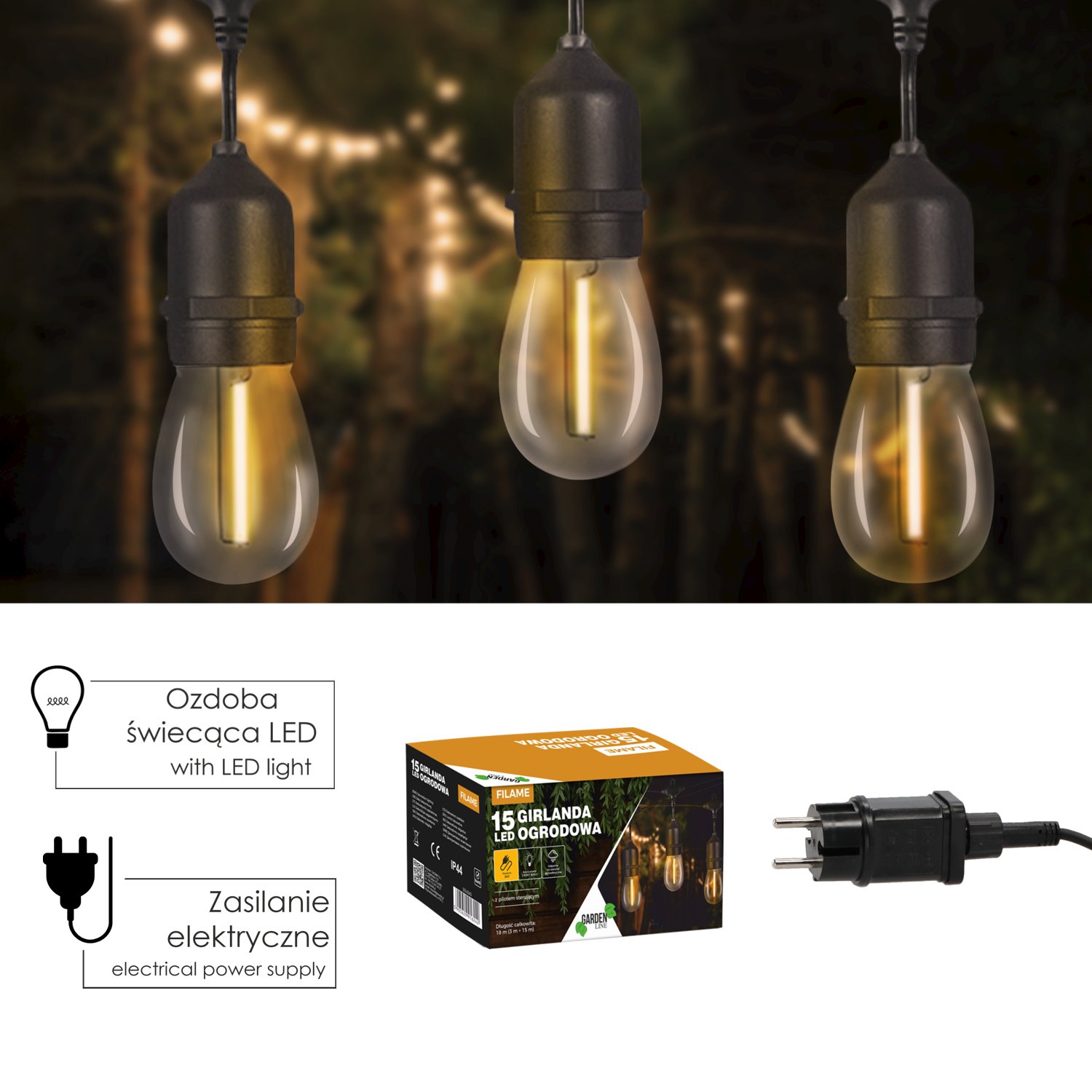 Girlanda s privjescima za vješanje prekrasan je ukras koji će vašem prostoru dodati jedinstvenu atmosferu u ljetnim večerima. Ravnomjerno osvjetljava sobu, terasu ili balkon. Vodootporna je (IP44). Boja svjetiljki i zanimljiv oblik lijepo se uklapaju i u suvremeni i u klasični stil unutarnjeg uređenja.