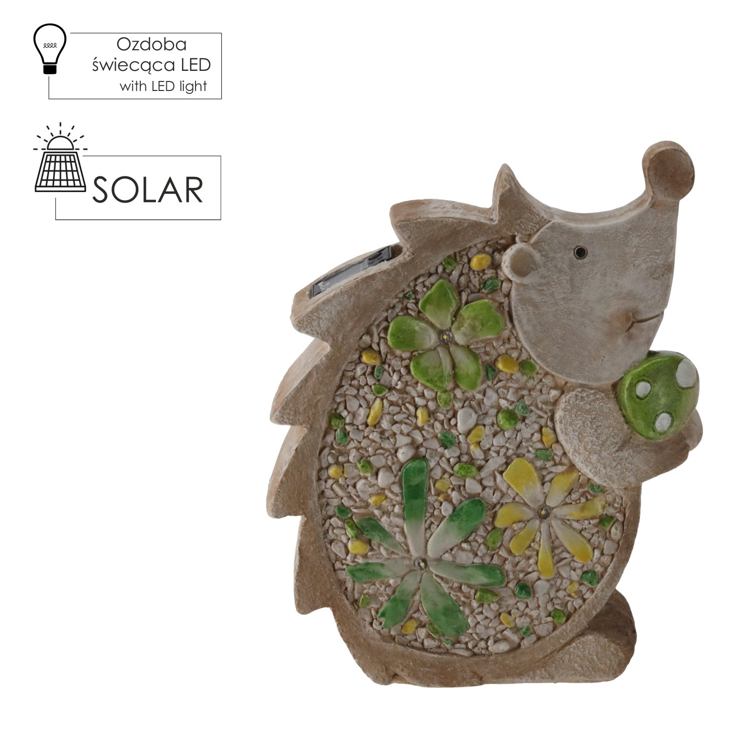 Vrtna figurica – Plosnati jež LED – GOT7324 namijenjena je prvenstveno vanjskoj upotrebi, ali je po želji možete postaviti i u unutarnje prostore, gdje će stvoriti ugodnu točku svjetlosti. LED osvjetljenje je energetski učinkovito i daje topao sjaj, pogodan za večernje osvjetljenje vrta ili terase. Za što dulji vijek trajanja figuricu postavite na suhu i stabilnu podlogu, a po potrebi je obrišite vlažnom krpom.