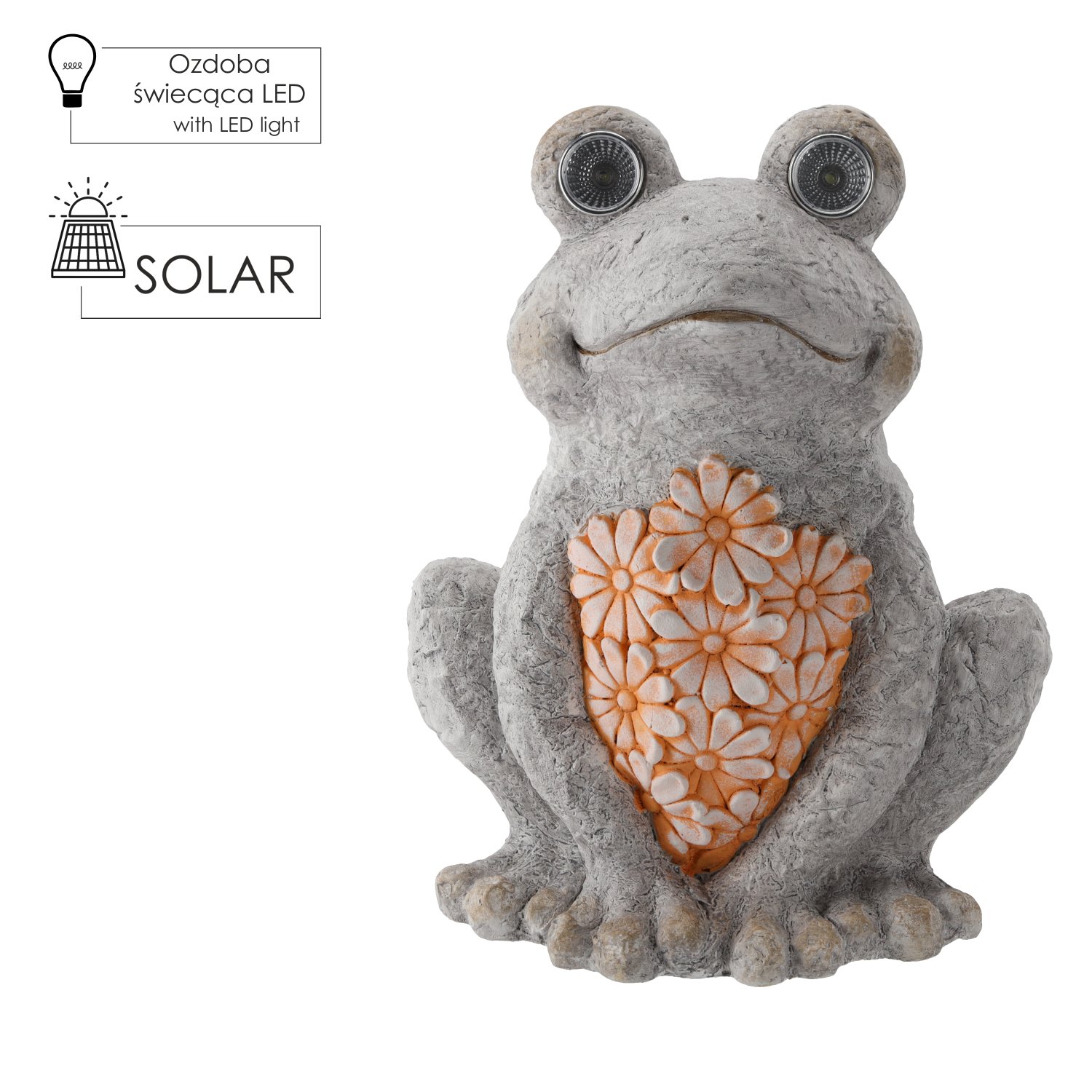 Ova simpatična vrtna figura u obliku žabe sa sjajnim LED očima donosi u svaki vanjski prostor dašak humora i topline. Proizvod marke Chomik izrađen je u Poljskoj i spaja dekorativnu funkcionalnost s jednostavnim postavljanjem koje ne zahtijeva posebno održavanje. Zahvaljujući LED osvjetljenju, žabica se navečer pretvara u nježno svjetleći ukras koji stvara ugodnu atmosferu u vrtu, na terasi ili pri ulazu u dom.