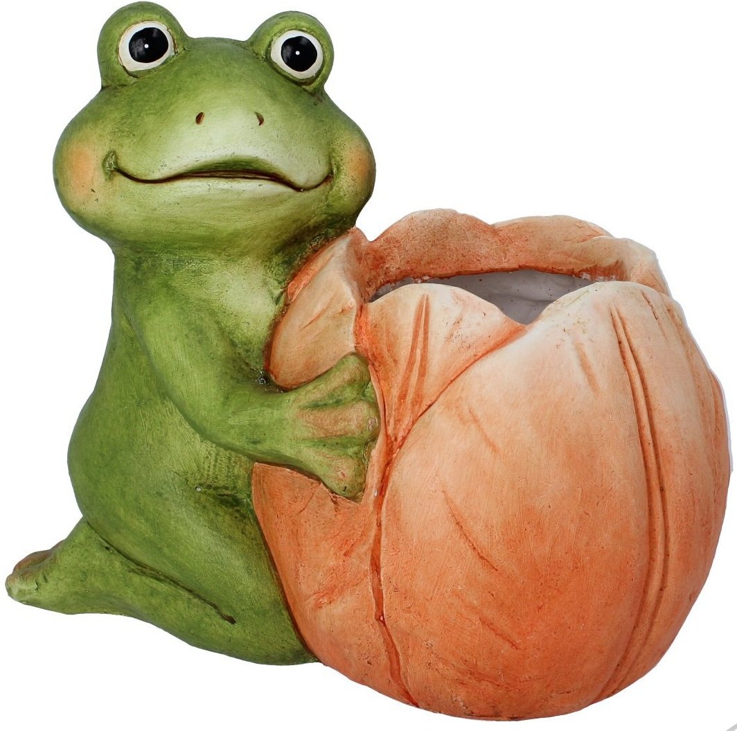 Vrtna posuda – Žaba s cvijetom – GOT7515 više je od obične posude za biljke – simbol je dobre volje, prirodne ravnoteže i opuštenog odnosa prema životu. Kada je postavite među biljke, stvara osjećaj povezanosti s prirodom i u vašem prostoru izaziva osmijeh svakoga tko je primijeti.
