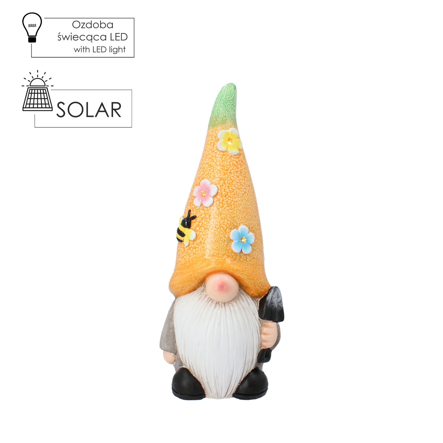 Žuti patuljak s LED svjetiljkom osmišljen je tako da spaja funkcionalnost osvjetljenja s ukrasnom svrhom. Svjetlo iz LED dioda je mekano i energetski učinkovito, što omogućuje dugotrajnu upotrebu bez pretjerane potrošnje električne energije. U večernjim satima stvara ugodan sjaj koji ističe biljke, staze ili druge dekorativne elemente. Tijekom dana figurica svojom bojom i oblikom stvara razigrani kontrast u prirodnom okruženju.