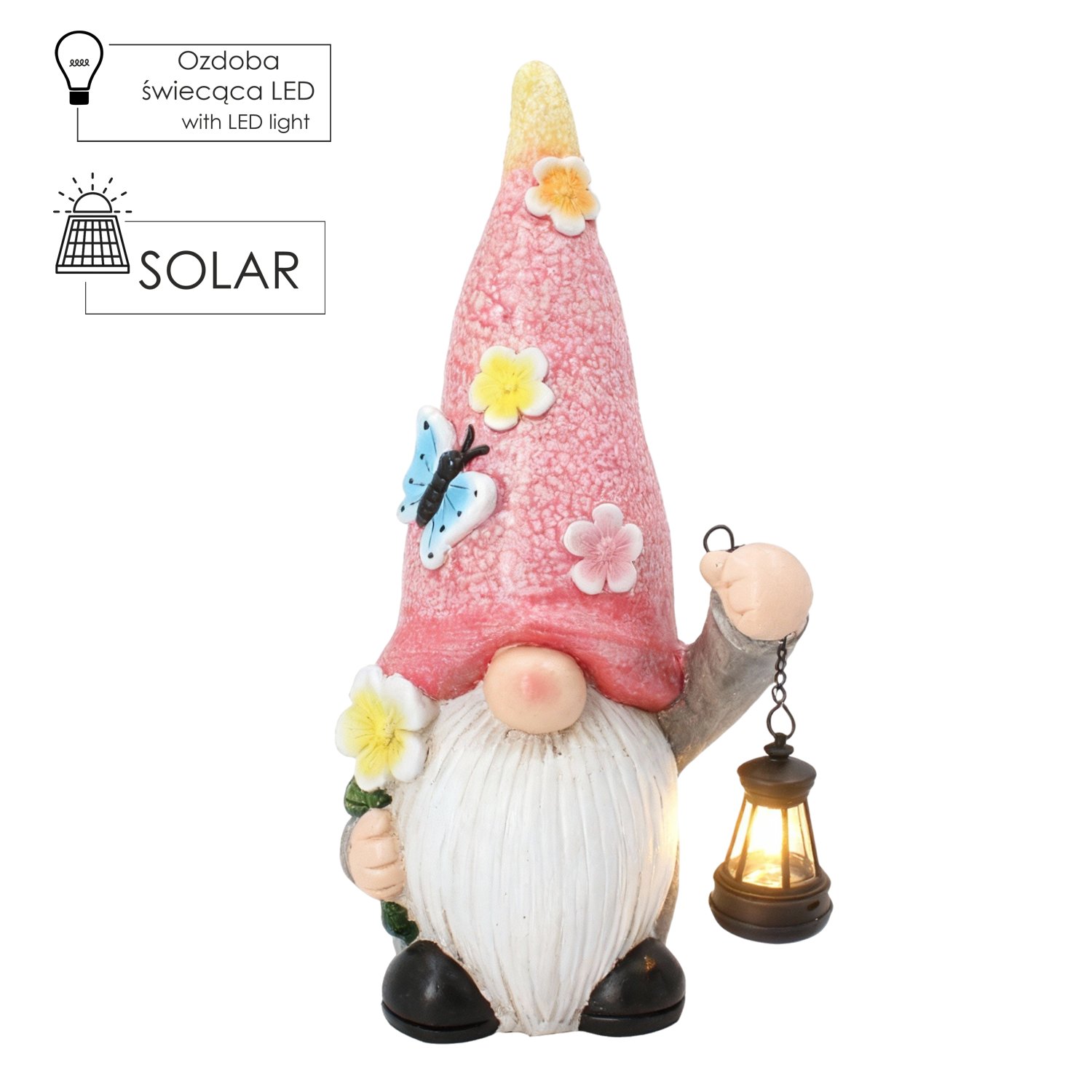 Proizvod mjeri 22,5 × 14,5 × 41,4 cm, što omogućuje dobru vidljivost, a da ne zauzima previše prostora. Zbog uravnoteženih proporcija figurica se lijepo uklapa među druge vrtne elemente, kao što su lončanice, kamenje ili manji ukrasni grmići. Visina od 41,4 cm omogućuje da LED svjetiljka učinkovito osvijetli okolinu, a da svjetlo ne bude neugodno.