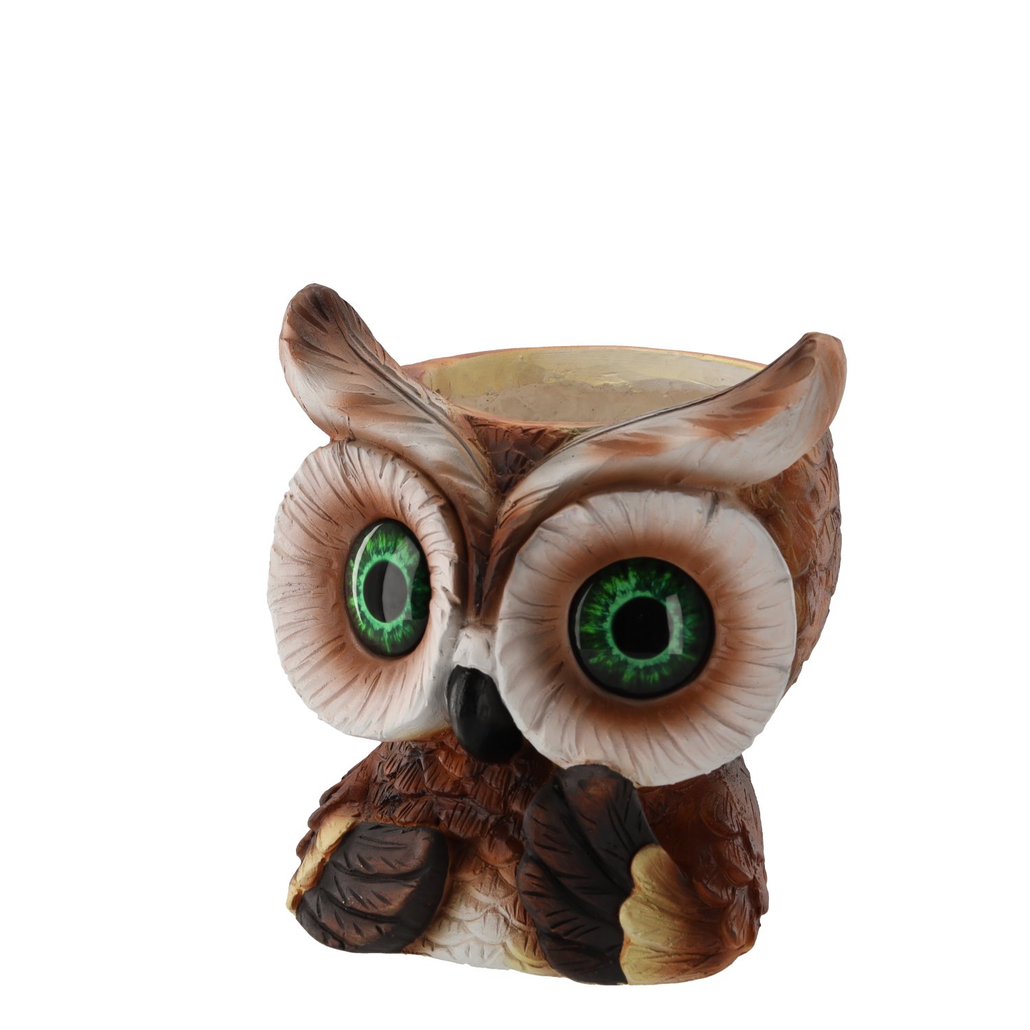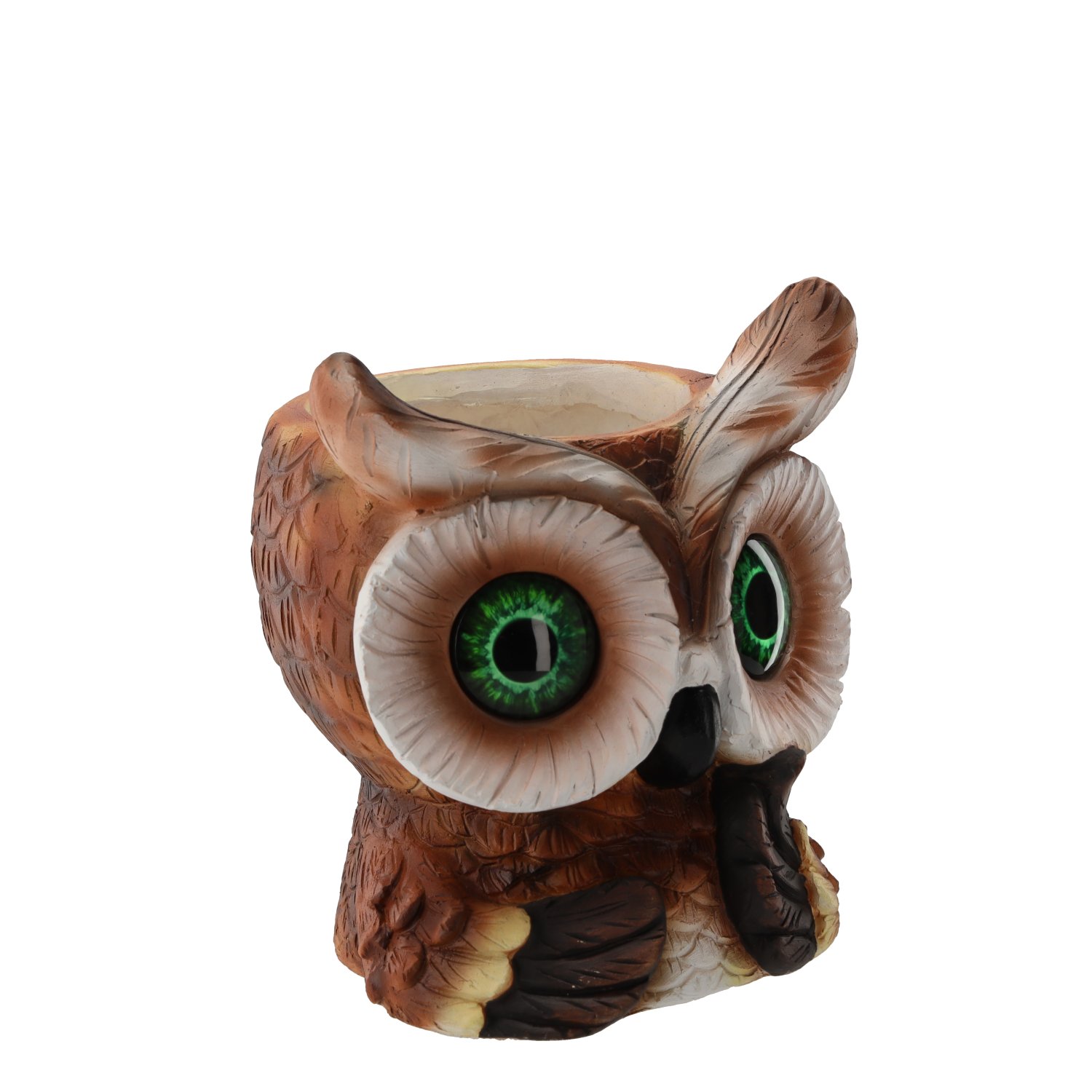 Sova od davnina simbolizira mudrost i spokoj, stoga ova dekorativna posuda donosi u svaki prostor dašak mira i elegancije. Možete je postaviti uz ulaz, na terasu, balkon ili među biljke u vrtu, gdje djeluje kao suptilan naglasak prirodne ljepote. Zbog kompaktnih dimenzija 26×24×27,5 cm lako se uklapa i u manje površine, a istovremeno nudi dovoljno prostora za sadnju manjih biljaka ili sukulenata.