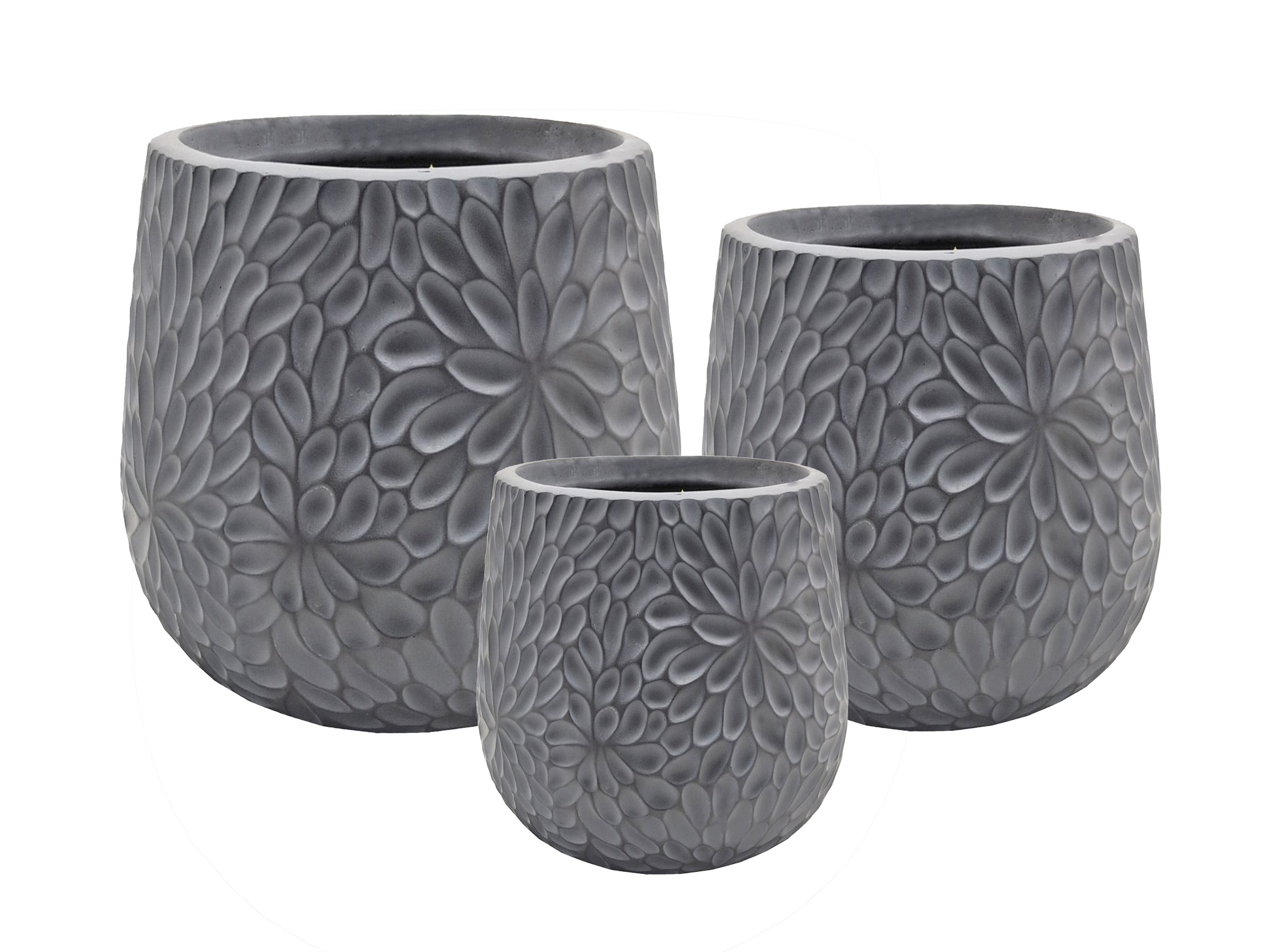 Tamni tonovi i utisnuta tekstura s biljnim motivom daju loncima Ashora profinjen, gotovo skulpturalan izgled. Možete ih koristiti kao samostalne naglaske ili ih kombinirati u kompoziciju koja će vašem prostoru dodati osjećaj povezanosti s prirodom. Set od tri različite veličine omogućuje stvaranje dinamičnih rasporeda, gdje se visine i širine lonaca međusobno nadopunjuju. Tako možete oblikovati harmoničan kutak koji odražava vaš osobni stil i osjećaj za detalj.