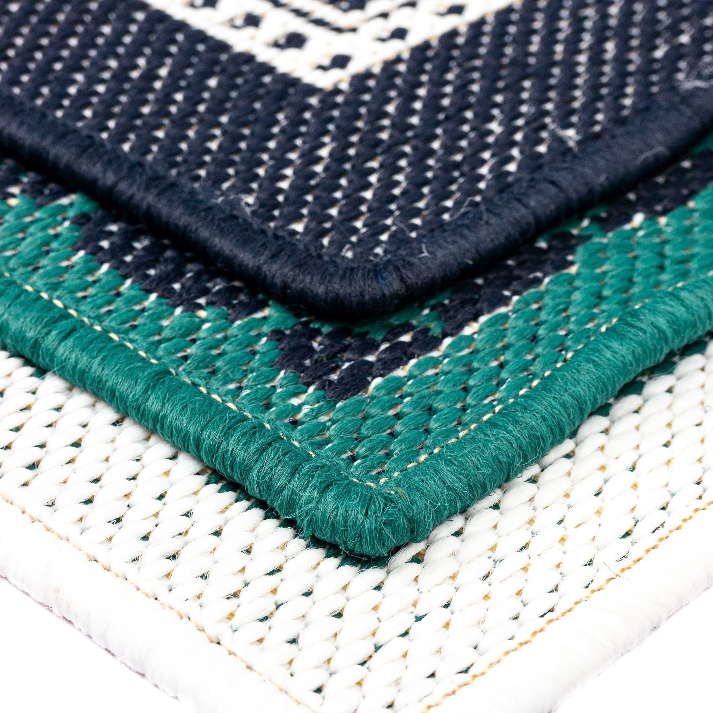 Dostupno je devet različitih uzoraka koje povezuje uravnotežen omjer boja i linija. Ti uzorci omogućuju da tepih upotpuni i minimalistički i šareno uređene vanjske ambijente. Ako tražite suptilan dodatak modernoj terasi ili želite naglasiti prirodni dizajn vrta, među izborima ćete pronaći odgovarajući motiv. Tepih je dizajniran tako da zadržava postojanost boja i pri većem izlaganju suncu, pa izgled ostaje svjež i privlačan duže vrijeme.
