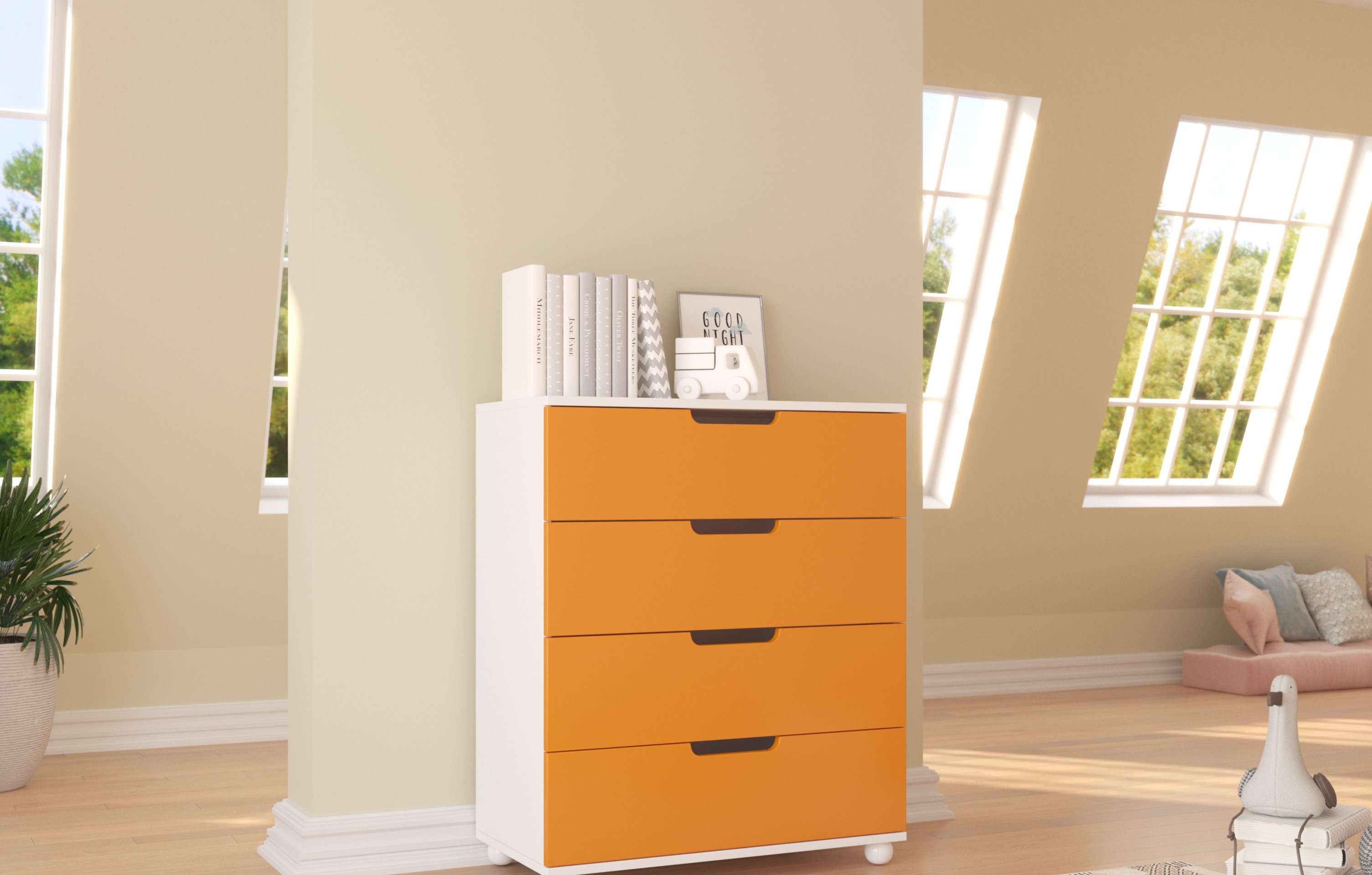 Komoda za dječju sobu Diaz s 4 prostrane ladice.
