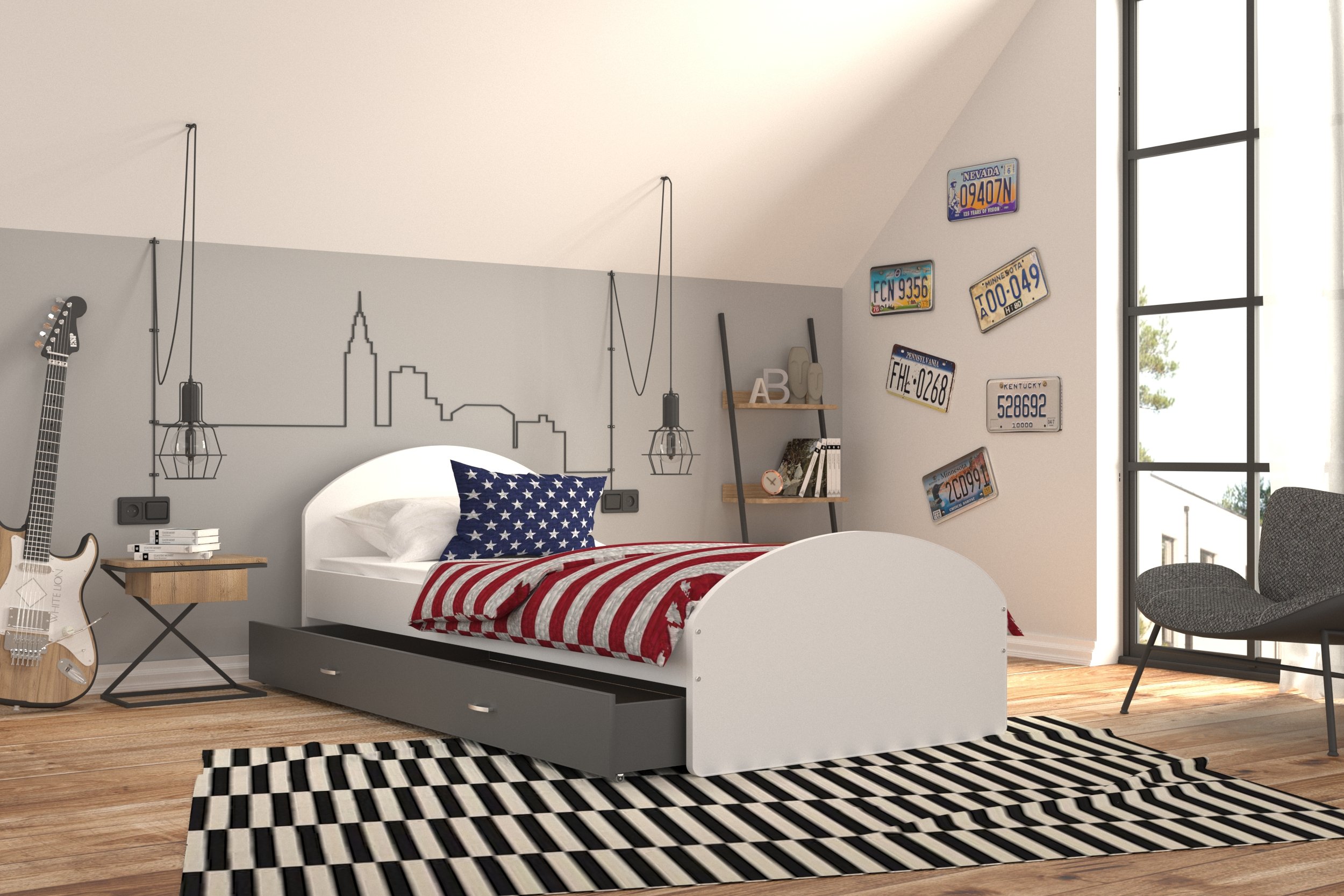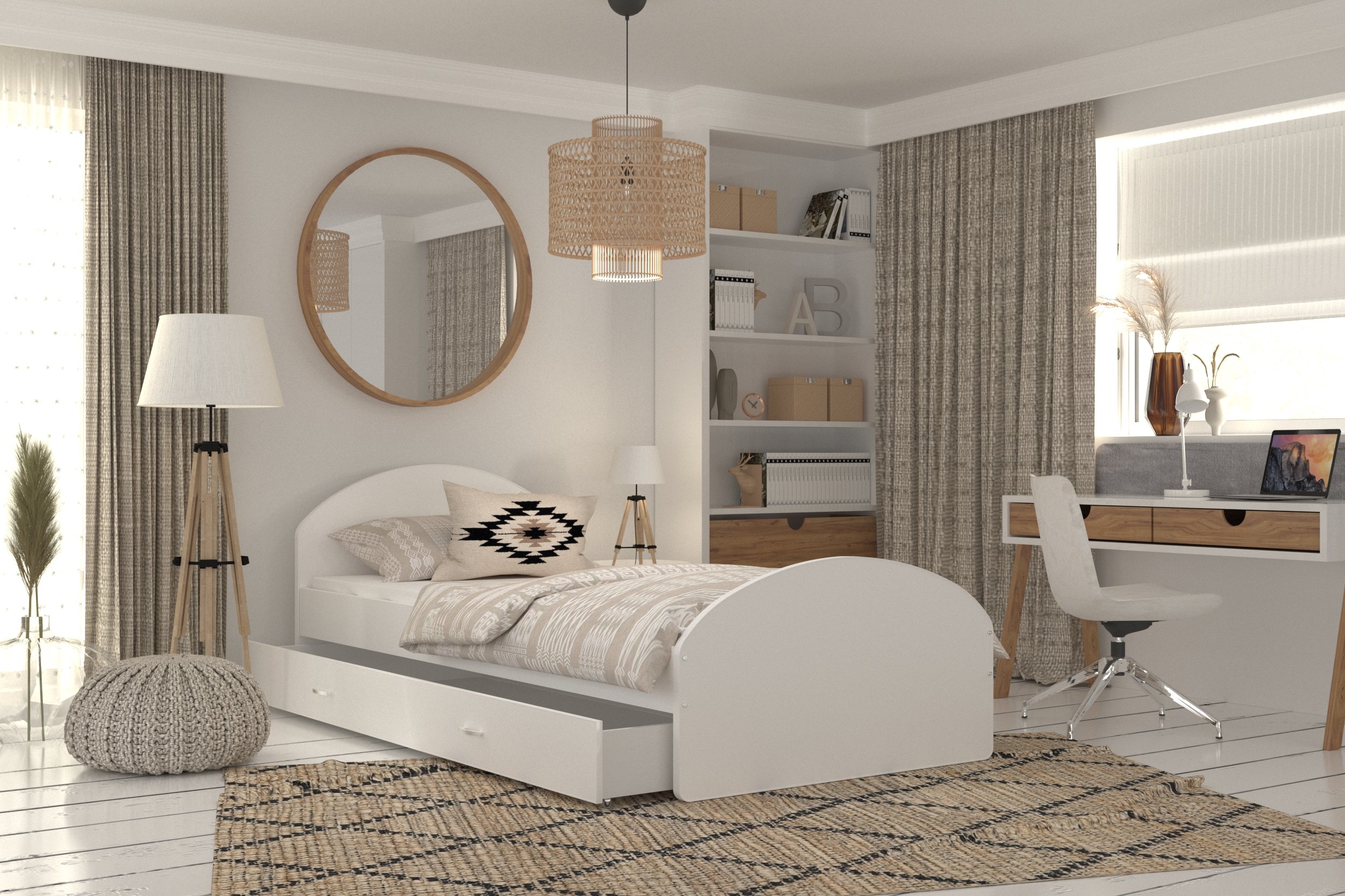 Postelja je zasnovana z mislijo na sodoben življenjski slog. Bela barva korpusa je univerzalna in jo lahko preprosto kombinirate z barvnimi poudarki v sobi. Ne glede na to, ali želite ustvariti živahno, igrivo okolje ali pa umirjeno in minimalistično atmosfero, se ta postelja popolnoma prilagodi. Z dodatnimi elementi, kot so barvni predali, lahko otroški sobi dodate osebni pečat in ustvarite prostor, kjer se bo otrok počutil prijetno in sproščeno.