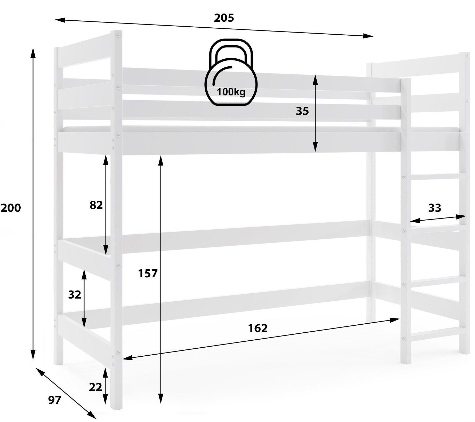 Tražite li praktično, sigurno i estetsko rješenje za dječju ili omladinsku sobu? Krevet na kat Antresola u bijeloj boji odličan je izbor za sve koji žele spojiti funkcionalnost, uštedu prostora i moderan dizajn. Zahvaljujući svom dizajnu omogućuje maksimalno iskorištavanje prostora u sobi, jer ispod ležaja ostaje mnogo mjesta koje možete iskoristiti za radni stol, ormar, kutak za igru ili dodatno spremište. Tako dječja soba postaje organizirana, prostrana i ugodnija za svakodnevni boravak.