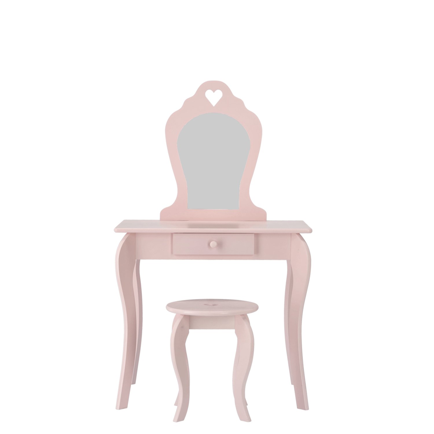 Prikladan stolić savršen je izbor za sve koji žele uredan i elegantan kutak za šminkanje, a da pritom ne zauzima mnogo prostora. Zahvaljujući promišljenom dizajnu i svijetloružičastoj boji unosi u svaki prostor osjećaj nježnosti i razigranog šarma, a svojom funkcionalnošću omogućuje udobnu svakodnevnu uporabu. Priložena stolica i mogućnost pričvršćivanja na zid dodatni su dokaz da je ovaj komplet stvoren za suvremene domove, gdje je svaki centimetar prostora važan.