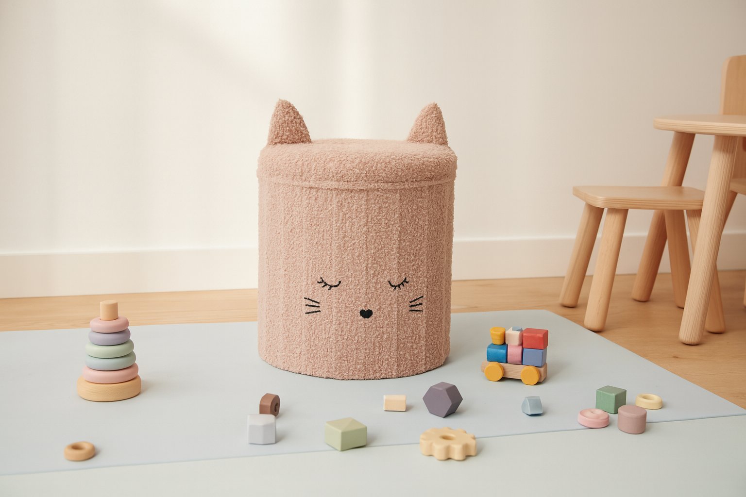 Konstrukcija taburea omogućuje jednostavno sklapanje, pa je idealan za prostore gdje je važan svaki centimetar. Kada vam nije potreban, možete ga brzo sklopiti i pospremiti, a pri ponovnoj upotrebi u trenu se pretvara u stabilno, ugodno sjedalo. U unutrašnjosti skriva praktičnu ladicu za pohranu u koju možete odložiti igračke, knjige, deke ili druge sitnice koje bi inače stvarale nered. Takvo rješenje posebno je korisno u manjim stanovima, gdje je prostor dragocjen, ili u dječjim sobama, gdje uvijek ima mnogo predmeta koje treba pospremiti.