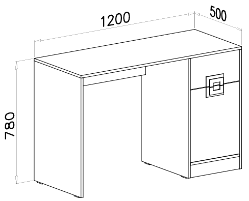 Dizajn dimenzija omogućuje udobno sjedenje i dovoljno prostora za pisanje, rad na računalu ili učenje. Visina od 78 cm odgovara standardnoj visini pisanih stolova, što omogućuje korištenje većine uobičajenih uredskih stolica. Dubina od 50 cm optimalna je za manje prostore, jer omogućuje učinkovito iskorištavanje prostora bez osjećaja skučenosti.