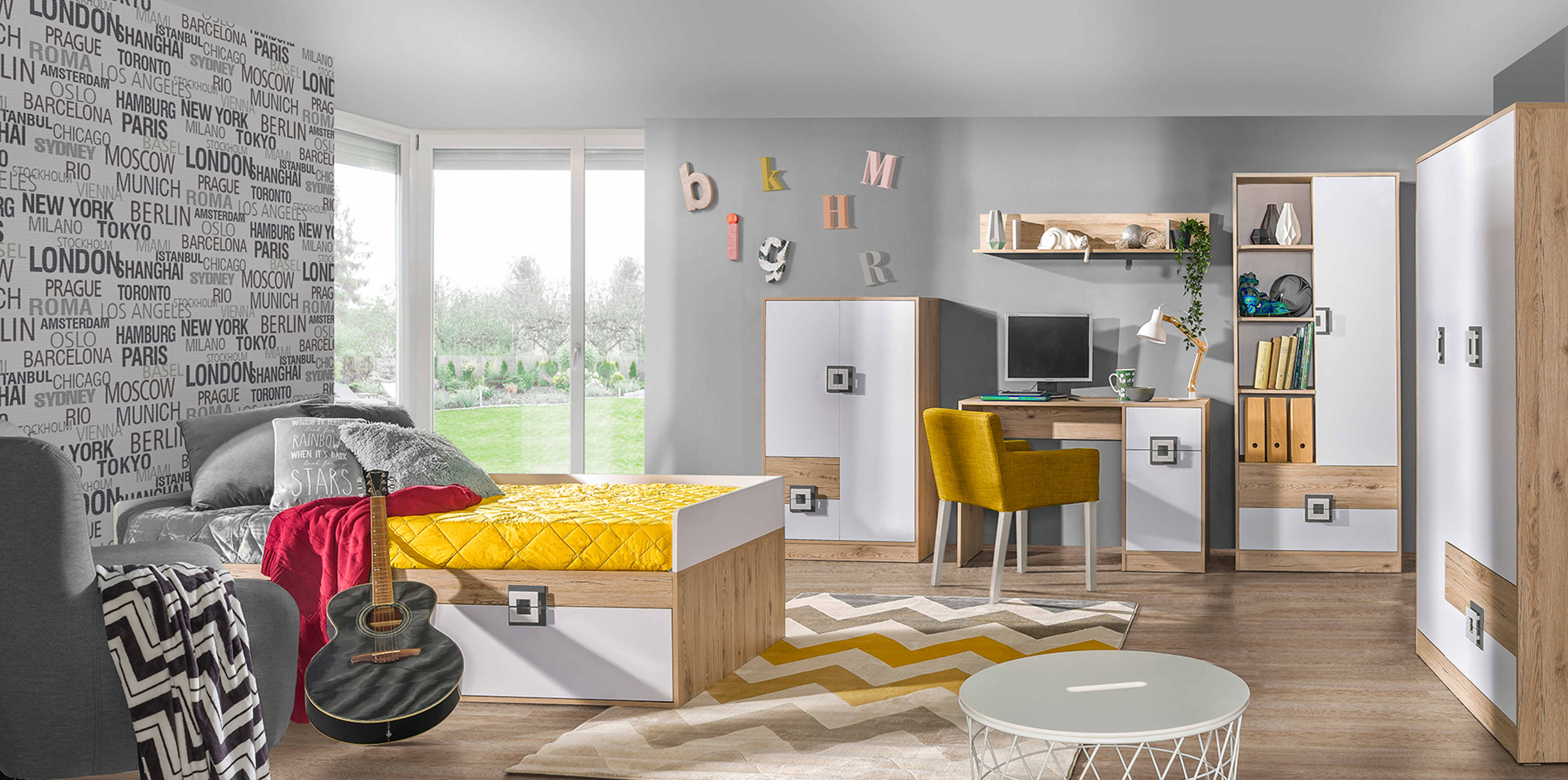 Posebnost modela Nico 10 su bijele i sive ručke, koje dodaju svježinu i suptilan kontrast svijetlom hrastu. Takva kombinacija boja omogućuje jednostavno usklađivanje s ostalim komadima namještaja, kako u kućnom tako i u poslovnom okruženju. Površina u dekoru hrasta imitira prirodnu teksturu drva i prostoru daje osjećaj topline, dok sivi detalji osiguravaju suvremen, uravnotežen izgled.