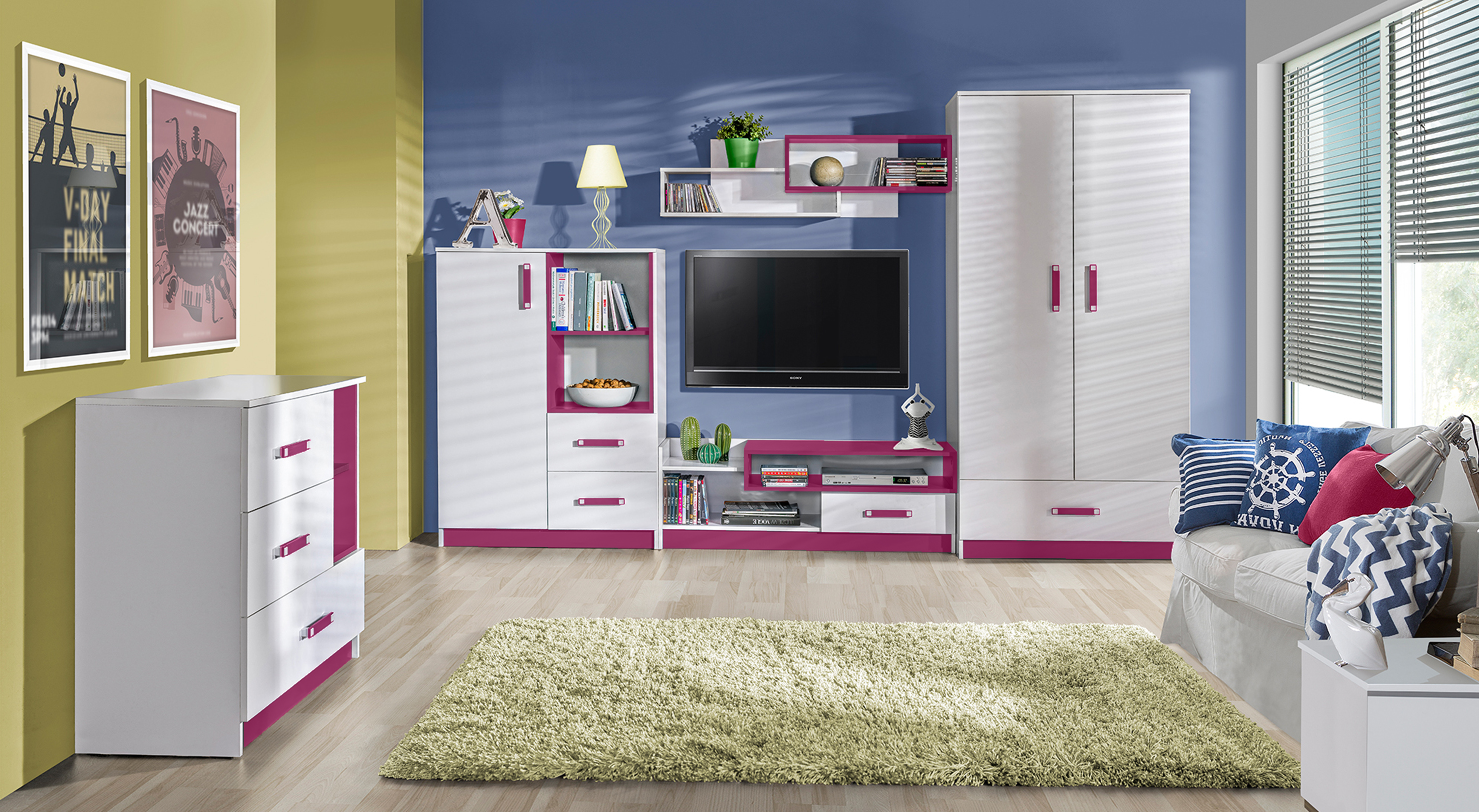 Kombinacija bijele i ružičaste unosi svježinu i nježnost u prostor. Bijela boja optički povećava prostor, dok ružičasta dodaje razigranost i toplinu. Ružičaste ručkice od izdržljivog sintetičkog materijala usklađene su s tonom fronti i stvaraju harmoničnu cjelinu. Takva kombinacija omogućuje jednostavno usklađivanje s drugim komadima namještaja u sličnim svijetlim tonovima ili s kontrastnim dodacima, ovisno o stilu interijera.