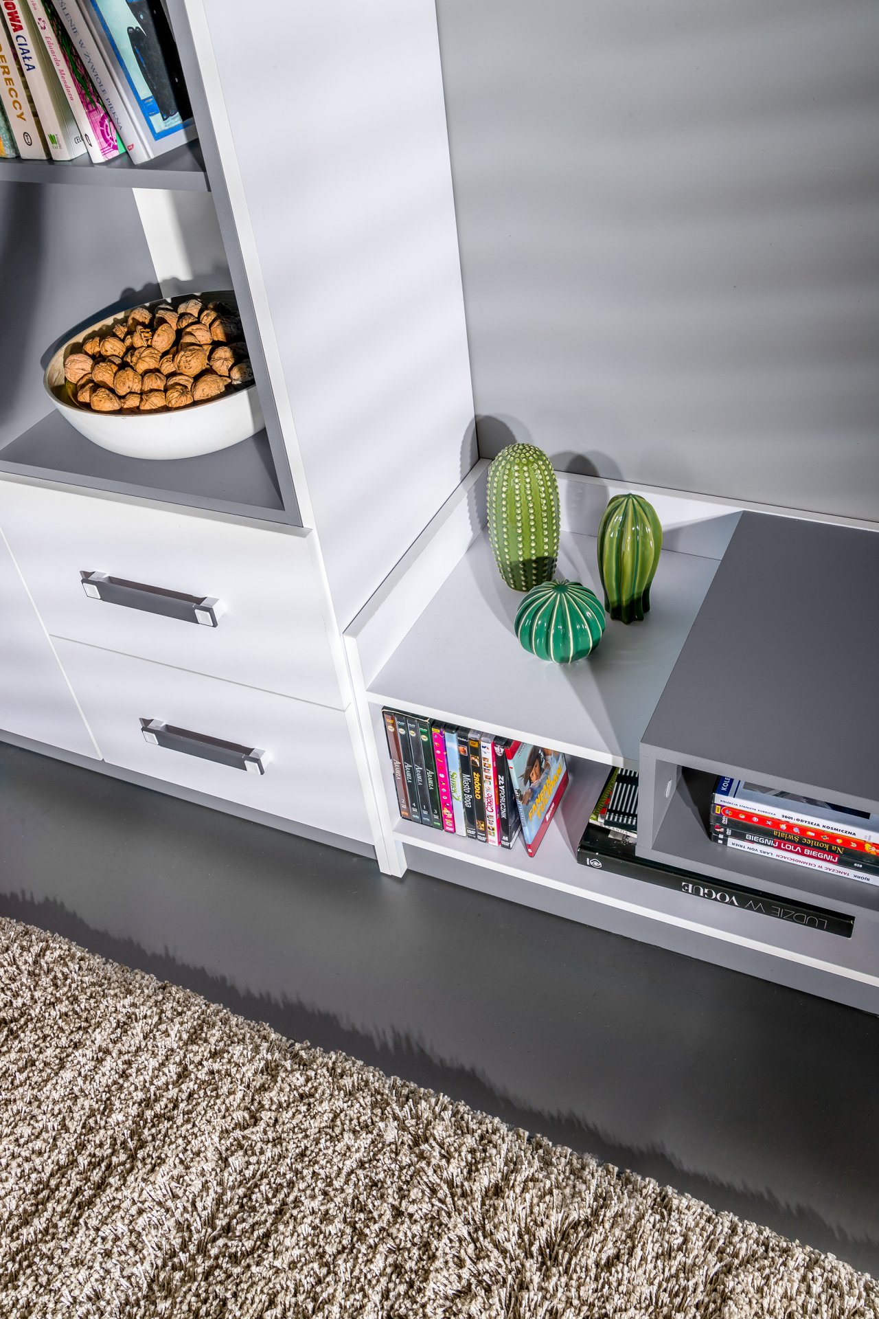 Kombinacija bijele i sive boje daje ormaru smiren, a ujedno elegantan izgled. Bijela boja povećava svjetlinu prostora, dok siva doprinosi osjećaju ravnoteže i suvremenosti. Takva shema boja lako se uklapa u različite stilove unutarnjeg uređenja – od minimalističkog i skandinavskog do klasičnog ili mladenačkog.