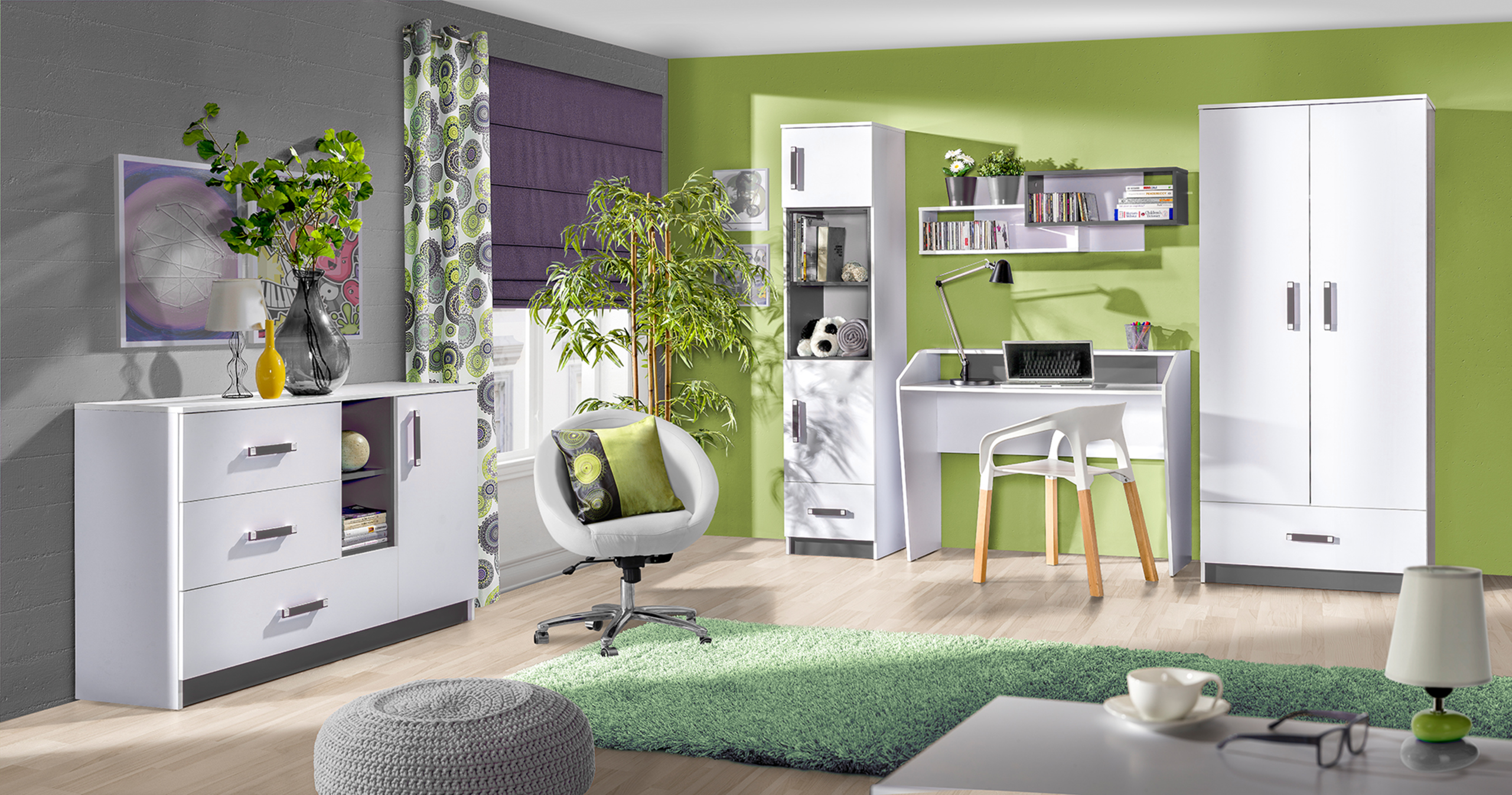 Bijela i siva boja komode tvore suptilan, ali elegantan kontrast koji se lijepo slaže s različitim dekorativnim elementima. Bijela površina vizualno povećava prostor i dodaje mu svježinu, dok sivi naglasci donose smiren ton i suvremenu notu. Takva kombinacija popularan je izbor pri uređenju modernih interijera jer omogućuje jednostavno usklađivanje s drugim bojama i materijalima poput drva, metala ili tekstila u neutralnim tonovima.