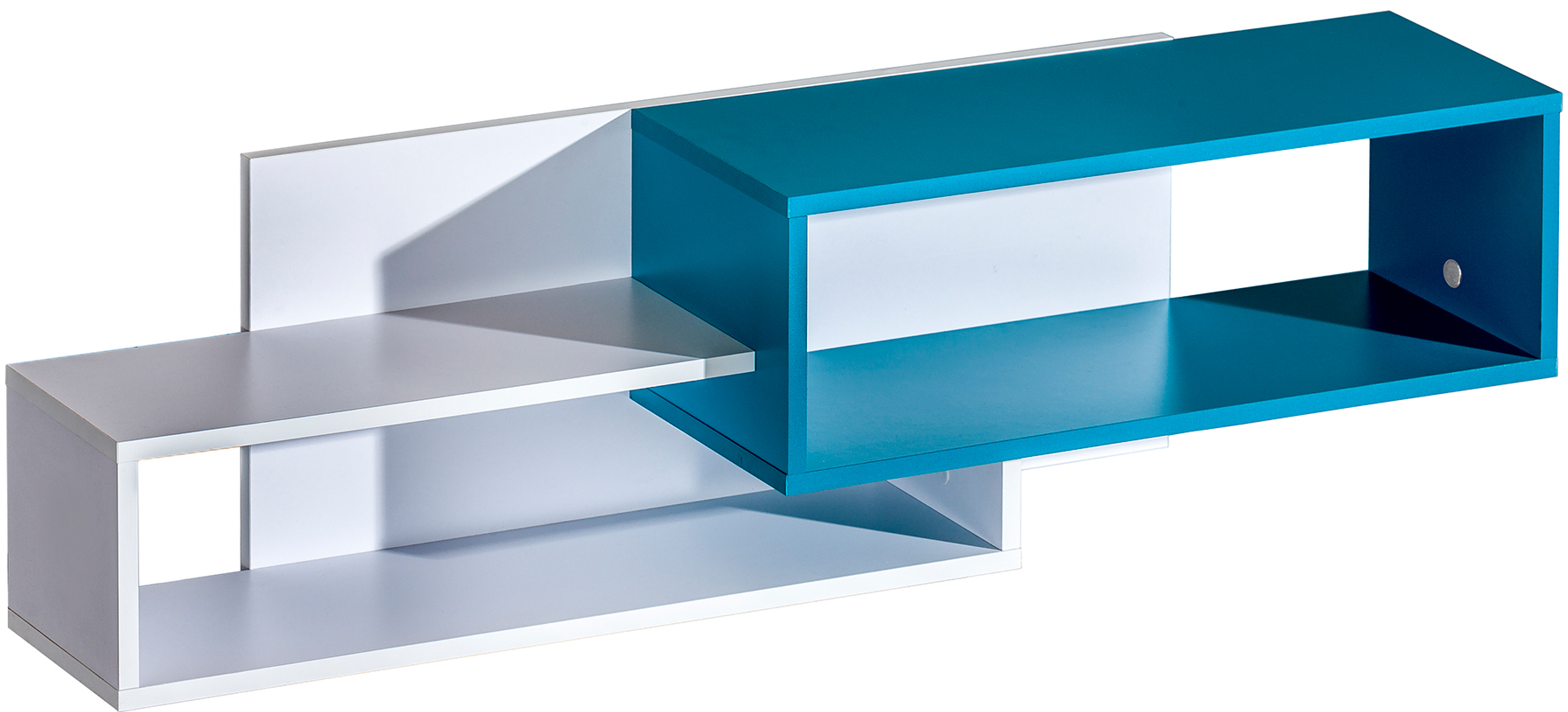 Polica se ističe kombinacijom dviju kontrastnih boja – bijele i tirkizne. Bijela površina nudi čist, neutralan izgled, dok tirkizni naglasci dodaju prostoru svježinu i energiju. Takva kombinacija boja lijepo se uklapa u suvremene unutarnje stilove te omogućuje jednostavno kombiniranje s drugim komadima namještaja u sličnim ili kontrastnim nijansama.