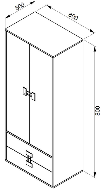 Ormar mjeri 50 × 80 × 80 cm, što ga svrstava među kompaktne modele, prikladne i za spavaće sobe, predsoblja ili manje garderobne prostore. Njegove jednostavne linije naglašavaju praktičnost, dok promišljeni unutarnji raspored nudi dovoljno prostora za pohranu osnovnih komada garderobe. Zahvaljujući uravnoteženim proporcijama, lako se može kombinirati s drugim namještajem iz iste kolekcije.