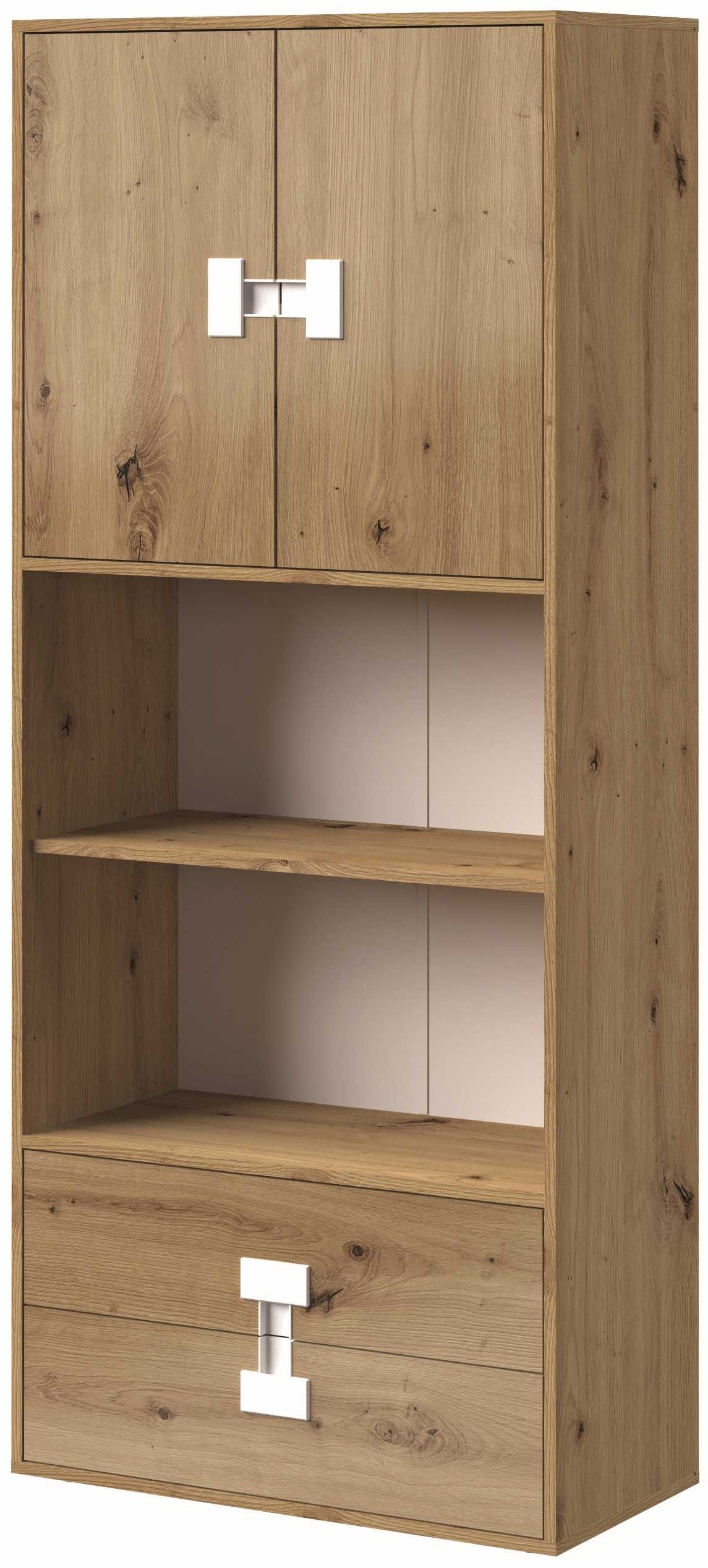 Regal Index 05 – Domel, u boji hrast artisan, predstavlja kombinaciju moderne praktičnosti, prirodnog izgleda i kvalitetne izrade. Svojim promišljenim dizajnom i mogućnošću kombiniranja boja ručki prilagođava se različitim stilovima uređenja, a istovremeno nudi dovoljno prostora za uredno i pregledno pohranjivanje. To je komad namještaja koji se ne prilagođava samo prostoru, već ga i oplemenjuje.