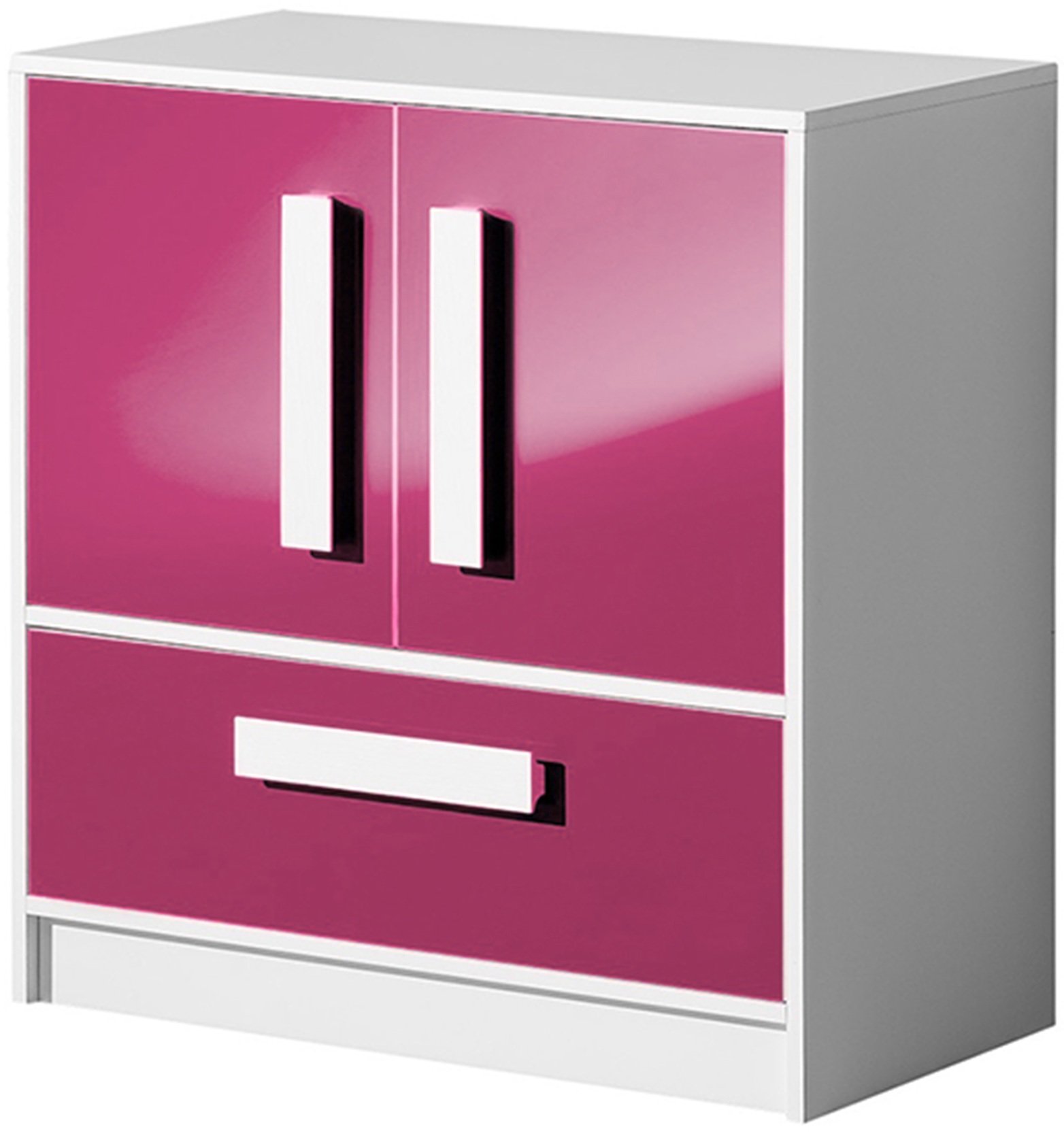 Ružičasta boja fronte komode Guliver 08 stvara osjećaj domaćeg ugođaja i topline, a istovremeno omogućuje brojne kombinacije s drugim bojama i teksturama. U kombinaciji s bijelim korpusom djeluje svježe i suvremeno, što je idealno za prostore u kojima želimo zadržati svjetlost i vizualnu prozračnost. Zbog kompaktnih dimenzija i promišljenog omjera visine i širine, komoda ne dominira prostorom, već ga nadopunjuje s pravom mjerom funkcionalnosti.