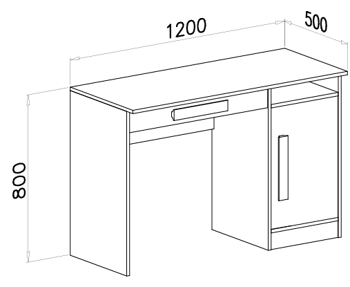 Dimenzije 120×50×80 cm nude dovoljno radne površine za računalo, uredski pribor ili školske potrepštine, a da stol ne zauzima previše prostora. Ladice i police opremljene su kugličnim vodilicama, što osigurava glatko i tiho otvaranje i zatvaranje. Takav mehanizam povećava uporabnu vrijednost i udobnost pri svakodnevnom radu ili učenju.