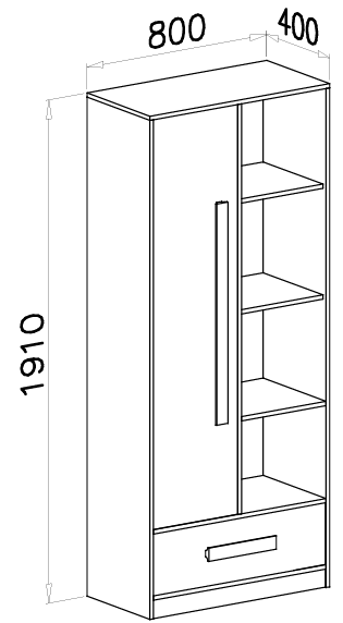 Dimenzije regala iznose 80×40x191 cm, što znači da nudi dovoljno prostora za pohranu knjiga, mapa, dekorativnih predmeta ili igračaka, a istovremeno ne zauzima previše podne površine. Njegova visina omogućuje maksimalno iskorištavanje vertikalnog prostora, pa je prikladan i za manje sobe. Police su opremljene s kugličnim vodilicama, koje osiguravaju glatko i tiho pomicanje te stabilnost kada se regal koristi za pohranu težih predmeta.