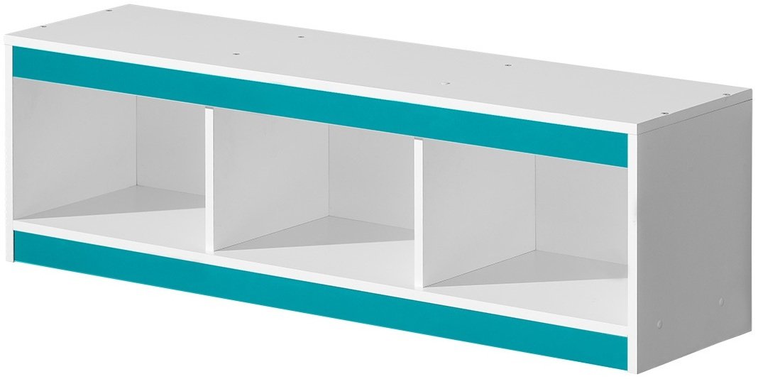 Kombinacija bijelog korpusa i tirkizne fronte stvara moderan, a istovremeno razigran kontrast. Bijela boja djeluje čisto i prostrano, dok tirkizna dodaje dašak energije i osobnosti. Zbog uravnoteženih tonova boja, polica Guliver 10 dobro se uklapa i uz svjetliji i uz tamniji namještaj. Prikladna je za one koji žele unijeti šareni naglasak u prostor, a da pritom ne preopterete cjelokupni ambijent.