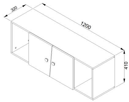 Polica mjeri 120 cm u širinu, 32 cm u dubinu i 41 cm u visinu. S takvim mjerama dobro se uklapa u manje i srednje velike prostore. Njezina visina omogućuje da se koristi i kao niska konzolna komoda ili postolje za dekorativne elemente. Zbog jednostavne strukture može se brzo sastaviti, pri čemu svi elementi precizno pristaju jedan uz drugi.