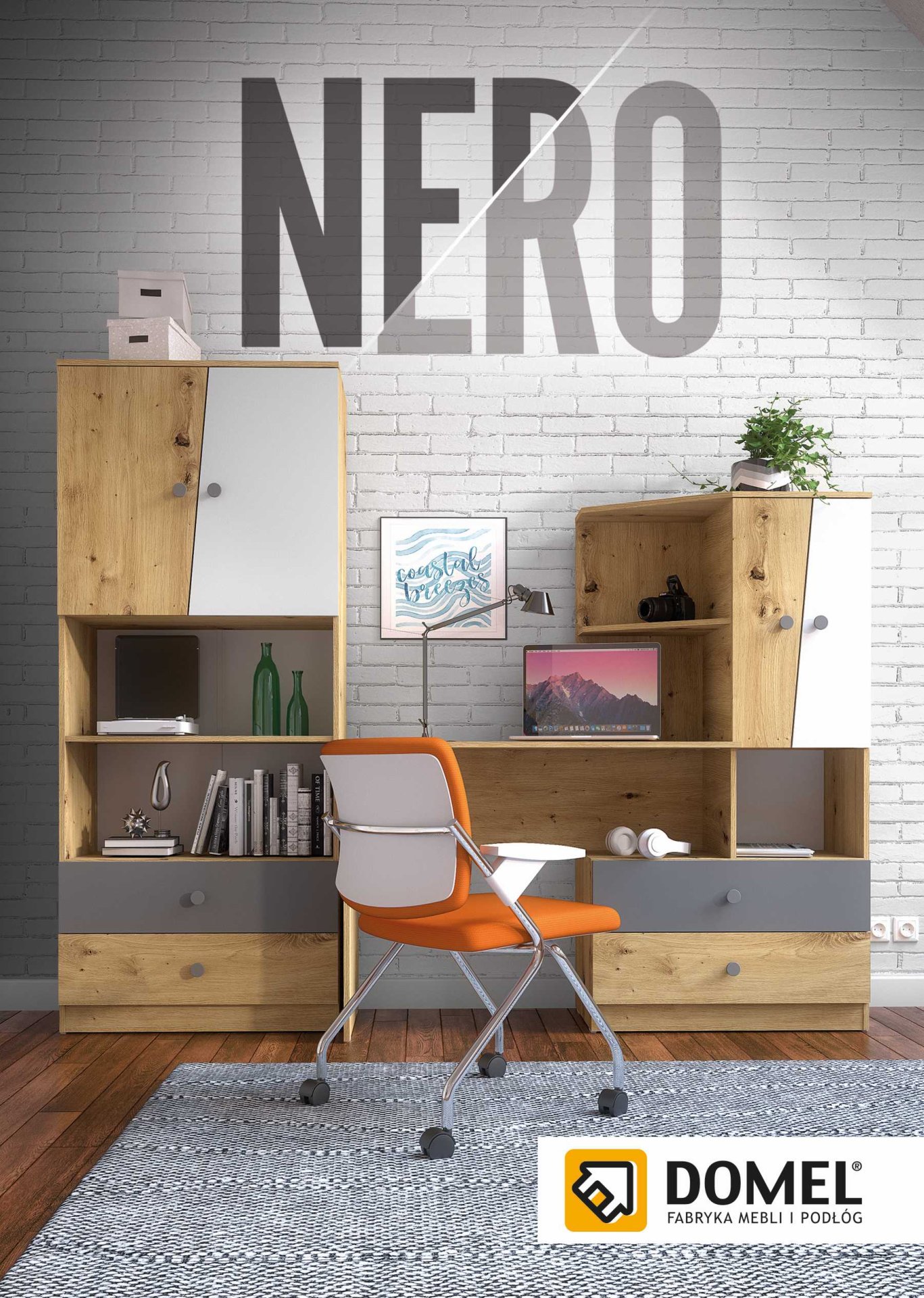 Dječja soba Nero je funkcionalno i estetski dovršeno rješenje za opremu dječje ili omladinske sobe. Izrađena je od kvalitetnih iveralih laminiranih ploča debljine 16 mm, koje osiguravaju stabilnost i dug vijek trajanja namještaja. Kombinacija topline dekora artisan hrasta i elegantnih mat površina u bijeloj, sivoj ili crnoj boji donosi ugodnu ravnotežu između prirodnog izgleda drva i suvremene minimalističke estetike. Proizvođač Domel iz Poljske pri dizajnu je pazio na jednostavnost linija, praktičnost uporabe i mogućnost stvaranja različitih kolorističkih kombinacija koje se prilagođavaju karakteru prostora i željama djeteta.