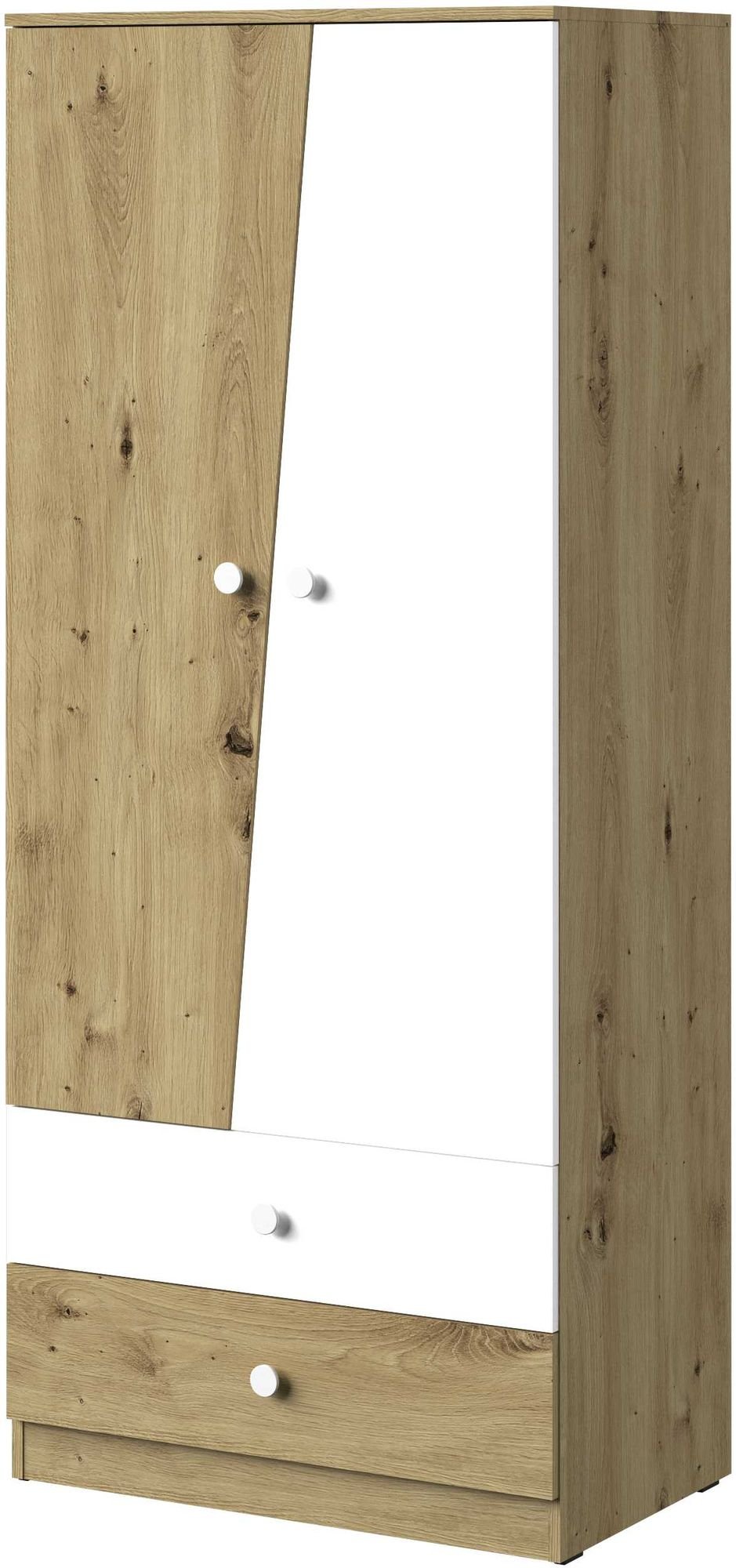 Garderobni ormar Nero 01 robne marke Domel dizajniran je za suvremene interijere, gdje je važno ravnoteže između estetike i praktičnosti. Svojim dimenzijama 80x50x190 cm savršeno se uklapa u spavaće sobe, predsoblja ili garderobne prostore, gdje je potrebno iskoristiti svaki centimetar prostora. Kombinacija topline dekora hrasta artisan s mat površinama u bijeloj, sivoj ili crnoj boji stvara profinjen, ali ugodan izgled koji se lijepo slaže s različitim shemama boja namještaja i dodataka.