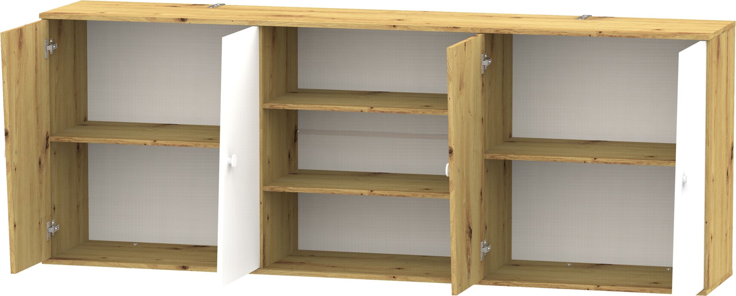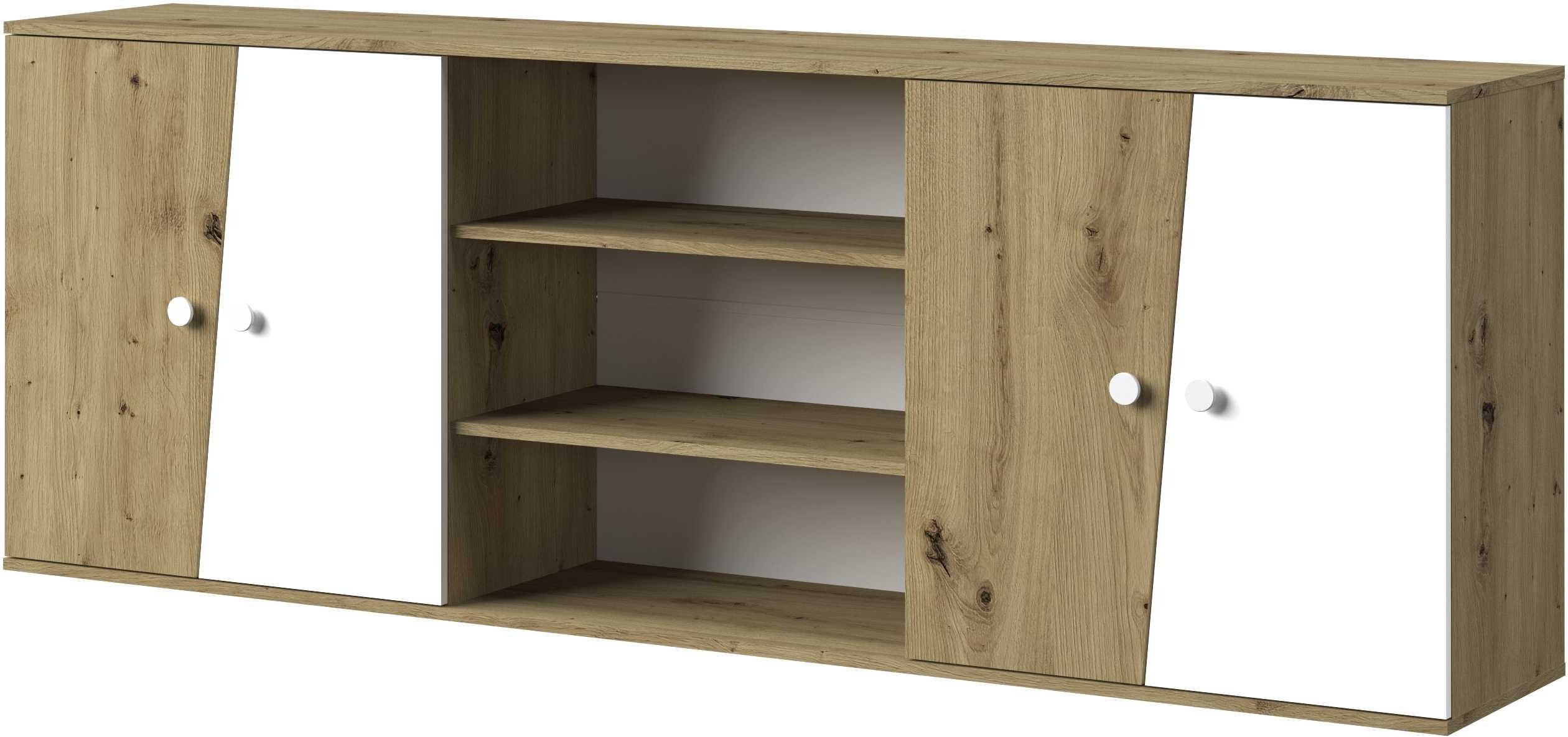 Nadogradnja za vodoravni krevet u ormaru Nero 17 osmišljena je kao funkcionalan dodatak koji nadopunjuje i proširuje praktičnost vašeg kreveta u ormaru. Kombinacijom bijele mat fronte i korpusa u dekoru artisan hrasta djeluje suvremeno, a istovremeno zadržava toplinu prirodnog izgleda drveta. Izrađena je od kvalitetne iverne laminirane ploče debljine 16 mm, što osigurava čvrstoću, stabilnost i dug vijek trajanja. Sa širinom od 214 cm, visinom od 79,8 cm i dubinom od 40 cm savršeno se uklapa iznad vodoravnog kreveta iz iste linije Nero 17 i omogućuje optimalno korištenje zidne površine.