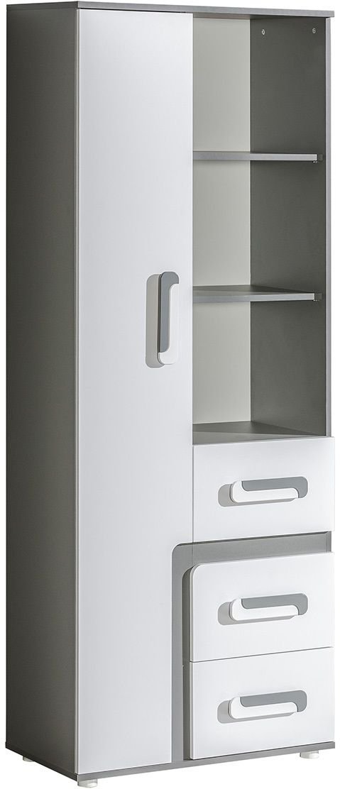 Dizajn regala Apetito 04 temelji se na čistim linijama i kontrastnim bojama. Korpus u boji antracit lijepo se nadopunjuje s bijelim frontama, što stvara svjež i moderan izgled. Ručke su oblikovane u kombinaciji bijela/antracit i izrađene od otporne sintetičke mase, koja omogućuje udoban hvat te jednostavno otvaranje vrata ili ladica.